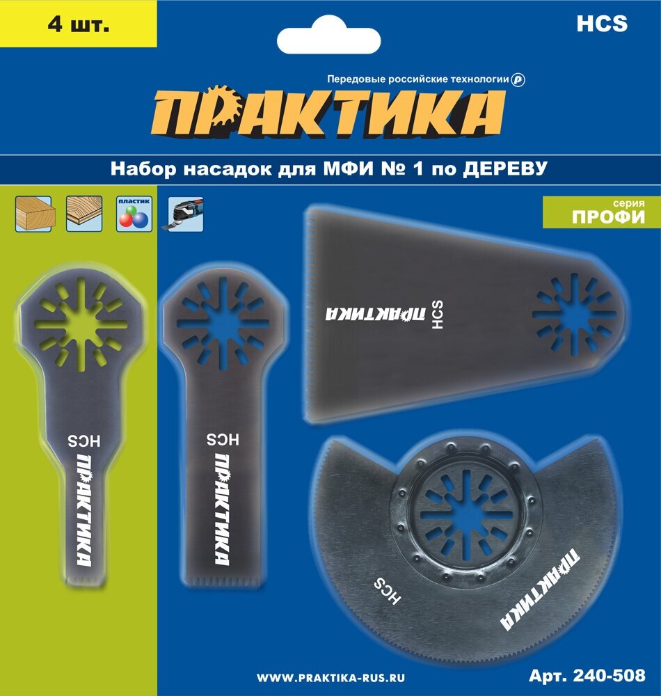 Набор насадок №1 для МФИ по дереву (4 шт.) ПРАКТИКА используется совместно с многофункциональным инструментом. Применяется при обработке деревянных изделий, фанеры, пластика, гипсокартона. Набор включает четыре насадки, позволяющие производить различные виды работ: выборка пазов, подрезание внутренних углов, вырезание проемов, резка плинтусов, пластиковых труб и т.д.Преимущества Насадки изготовлены из высокоуглеродистой инструментальной стали Надежность