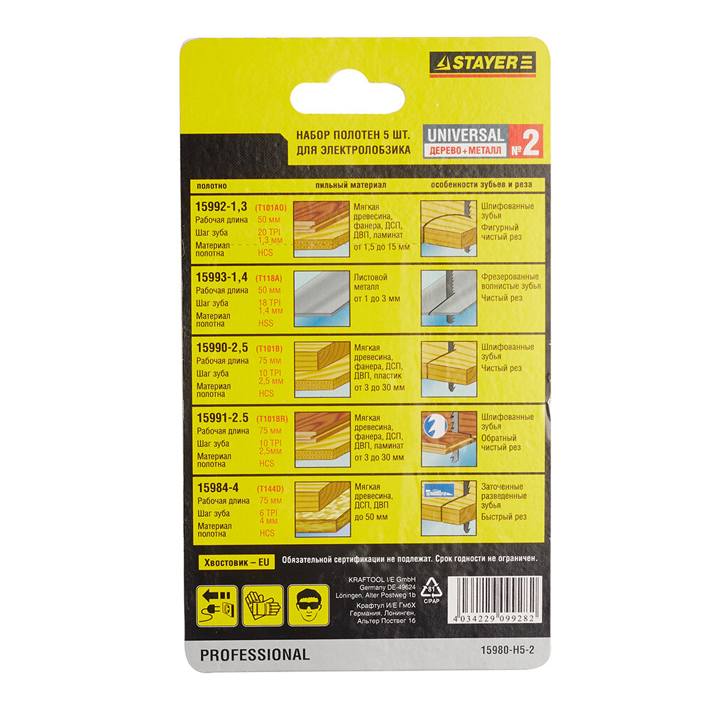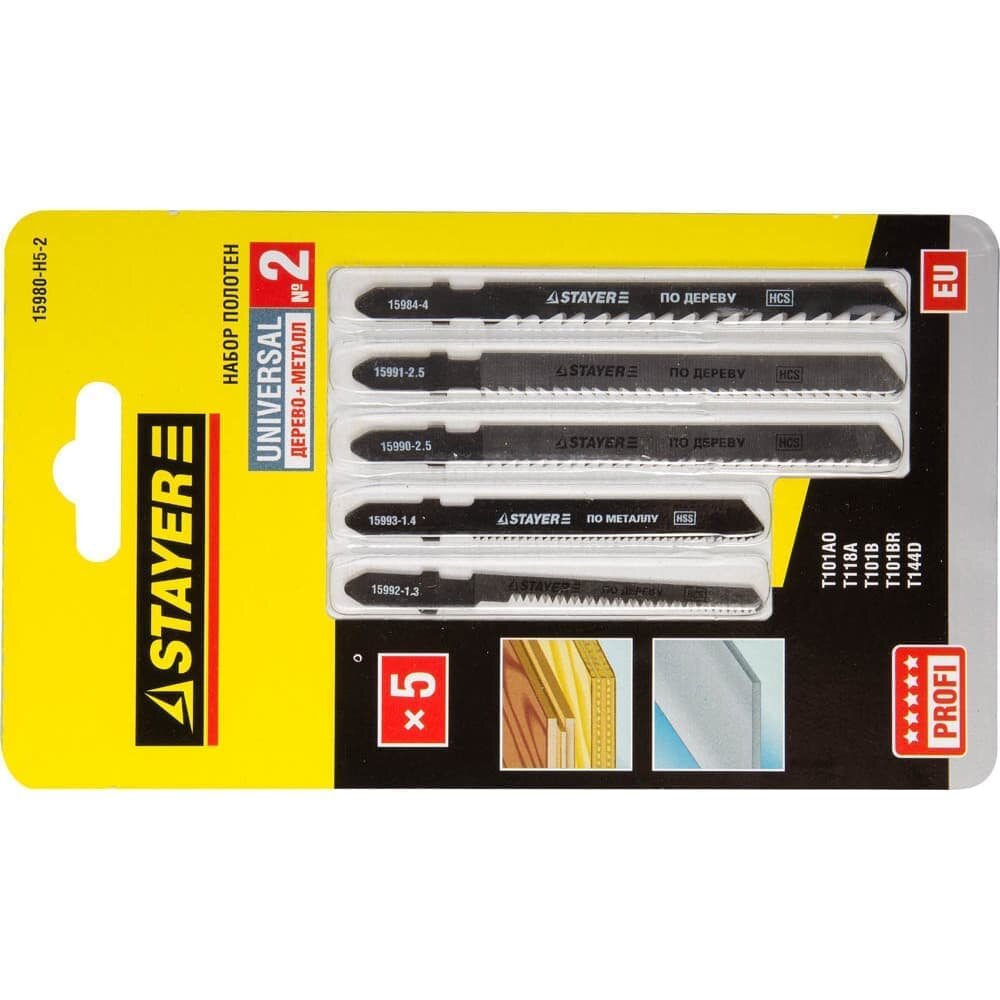 Набор STAYER "PROFI" Пилки "УНИВЕРСАЛ №2" для эл/лобзика, по дереву и металлу, EU-хвост., 5шт