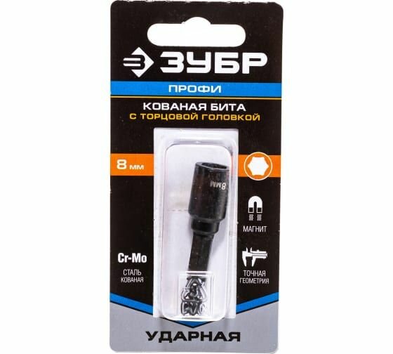Биты Зубр ПРОФИ 26375-08 Нат-драйвер с торцовой головкой, магнитная, хвостовик E 1/4, L=50мм, 8мм, 1шт