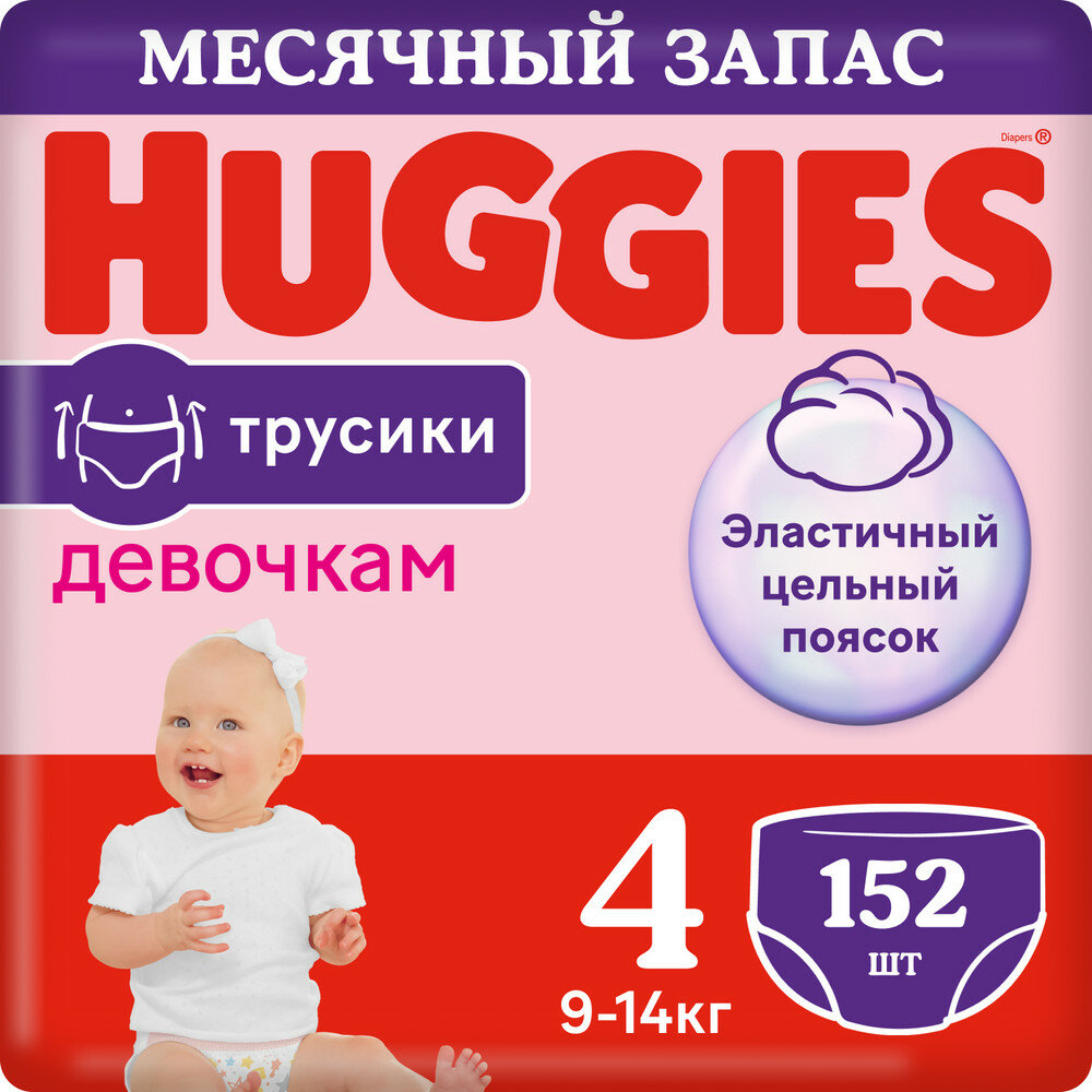 Трусики-подгузники Huggies Mega 4 для девочек (размер: 4/L (7-14 кг))
