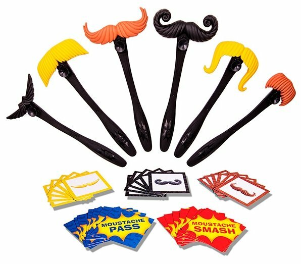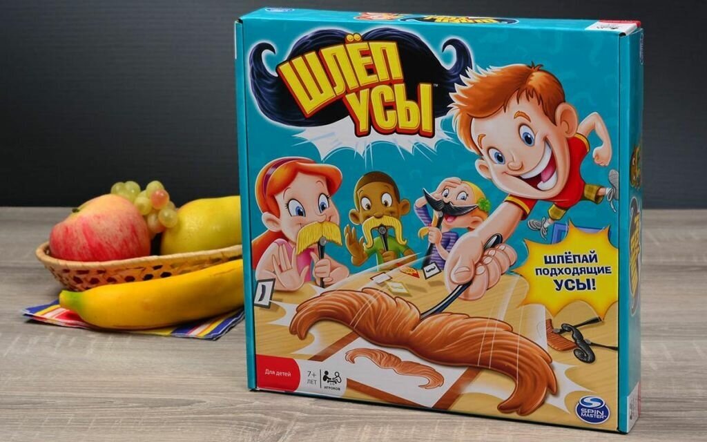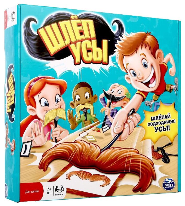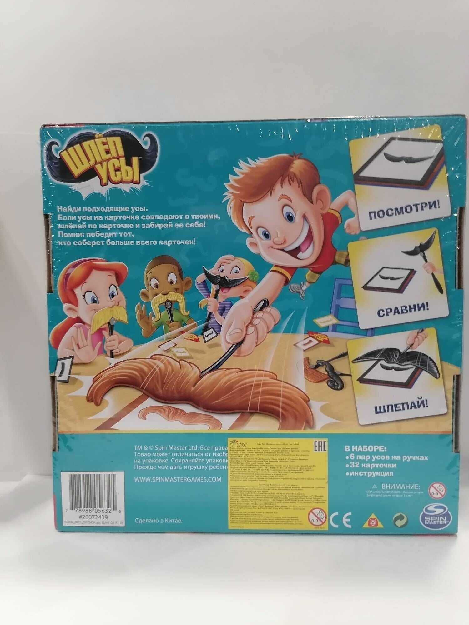 Новая увлекательная настольная игра Шлёп Усы от компании Spin Master рассчитана на 3-6 игроков в возрасте от 7 лет. Правила игры очень просты: каждому игроку раздаются шутливые усы на специальной палочке с присоской, ведущий переворачивает по одной карте из колоды, на картах нарисованы все виды усов, задача игрока — хлопнуть по карточке ручкой, чтобы поймать карту с усами своей формы или цвета. В этом случае он забирает карточку себе. Если игрок ошибается — он отдаёт 2 карты из своего запаса.