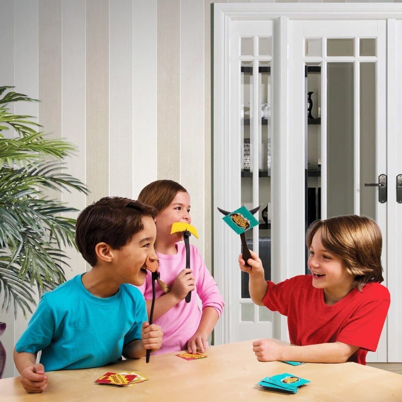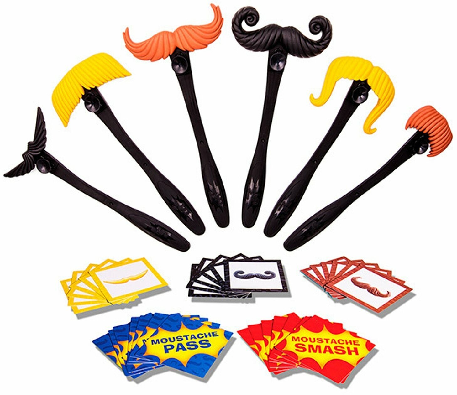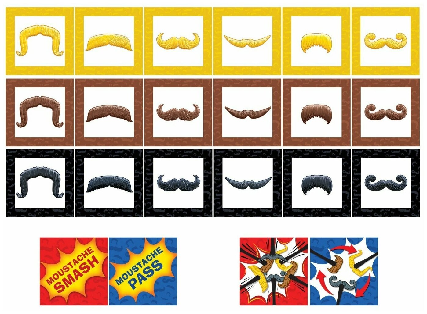 Новая увлекательная настольная игра Шлёп Усы от компании Spin Master рассчитана на 3-6 игроков в возрасте от 7 лет. Правила игры очень просты: каждому игроку раздаются шутливые усы на специальной палочке с присоской, ведущий переворачивает по одной карте из колоды, на картах нарисованы все виды усов, задача игрока — хлопнуть по карточке ручкой, чтобы поймать карту с усами своей формы или цвета. В этом случае он забирает карточку себе. Если игрок ошибается — он отдаёт 2 карты из своего запаса.