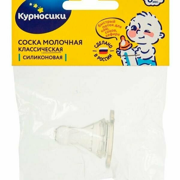 Соска Курносики силиконовая классическая быстрый поток с 6 мес выполнена из прочного гипоаллергенного силикона, который не вступает в химическую реакцию со слюной, хорошо стерилизуется, не теряет форму и не впитывает запахи. Соска изготовлена в классической форме. Отверстие соски обеспечивает быстрый поток и подходит ко всем стандартным бутылочкам. Соска плотно прилегает к крышке и предотвращает протекание. Оптимальна для густого питания: каш, соков, кисломолочных продуктов.