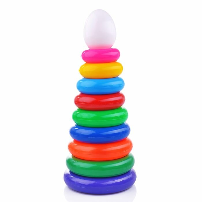 Пирамидка - это настоящее дидактическое пособие для малышей и тренажер для развития мелкой моторики и координации движений обеих рук. В процессе игры ребенок знакомится с разными цветами и размерами предметов, учится соотносить и сравнивать предметы по этим признакам. С помощью пирамидки можно освоить устный порядковый счет. Пирамида состоит из 7 колец. Высота игрушки - 45 см.
