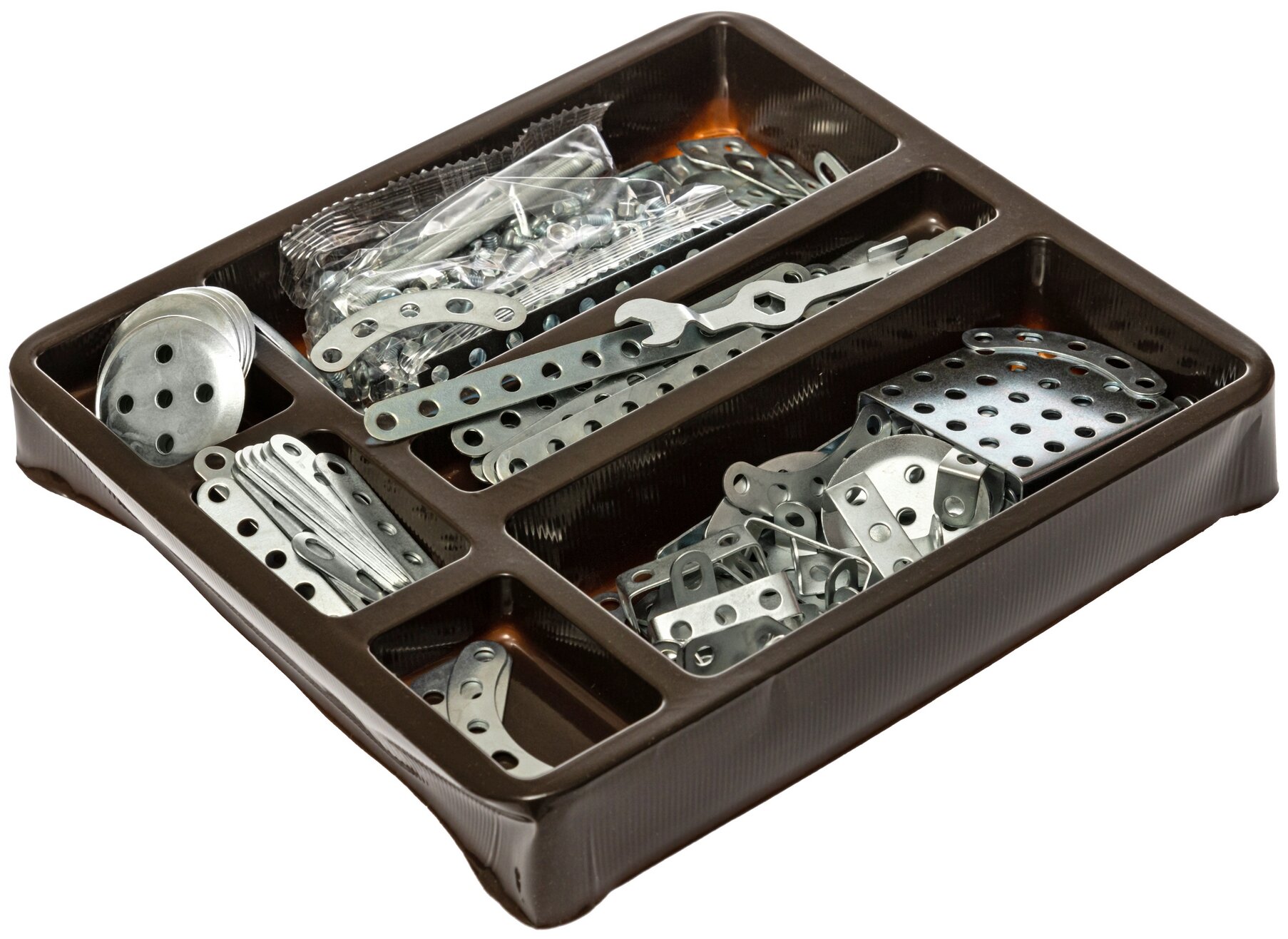 Конструкторы бывают разными, среди множества моделей бывает достаточно сложно сориентироваться, выбрать самый лучший и самый подходящий. В раннем возрасте важно развить одинаково хорошо как логические навыки и моторику, так и воображение, пространственное мышление и конструирование, ведь каждое из этих умений по-своему ценно и может пригодиться в будущем. Старшее поколение точно знает, что металлические конструкторы - это отличный вариант, который все вышеперечисленное охватывает, ведь это - классика, родом из Союза, классика, знакомая всем и каждому - настоящий металлический конструктор Самоделкин! Что такое металлический конструктор? Это развлечение, появившееся еще в период Советского Союза - и тут же был рекомендован в качестве варианта для занятий на уроках труда, и не просто так: прочный, способный выдержать большую нагрузку и позволяющий моделировать и собирать не только шаблонные фигурки, но еще и реализовывать собственные оригинальные идеи. Множество гладких деталей и крепления-болты - залог того, что малыш точно сможет в будущем выполнять работу по дому - а это не только полезно, но часто бывает очень важно. Но нельзя забывать о технике безопасности - крепления достаточно небольшие, поэтому детям до 6 лет давать такую игрушку не рекомендуется.Долговечность, обусловленная качеством материалов, позволит и ребенку как следует развлечься, и родителям, быть может - ведь кто устоит перед возможностью вспомнить собственные творения из пластинок с болтиками? Собранные модели можно раскручивать и пересобирать во что-то другое, новое, так что, можно смело говорить еще и об универсальности такого обучающего конструктора. Металл устойчив к нажиму, его можно гнуть для придания формы пластинкам. Но самое приятное - ребенок с ранних лет научится разбираться в схемах для того, чтобы каждый раз, когда захочется поиграть с новой машинкой или самолетиком, или сделать игровую площадку для кукол, можно было бы просто собрать ее!