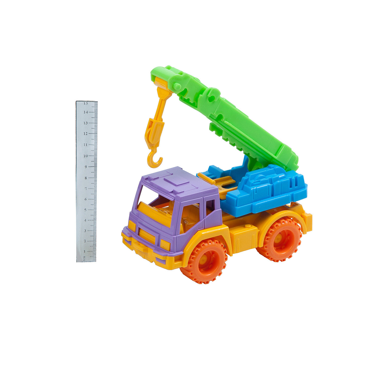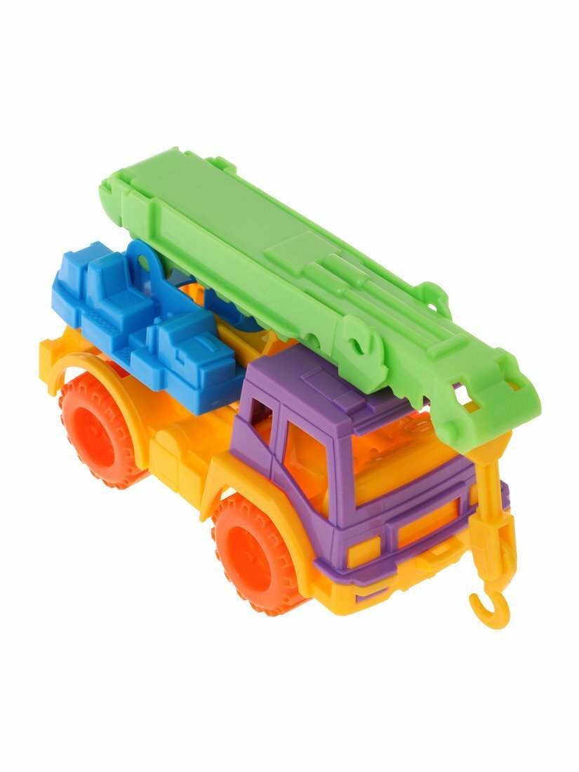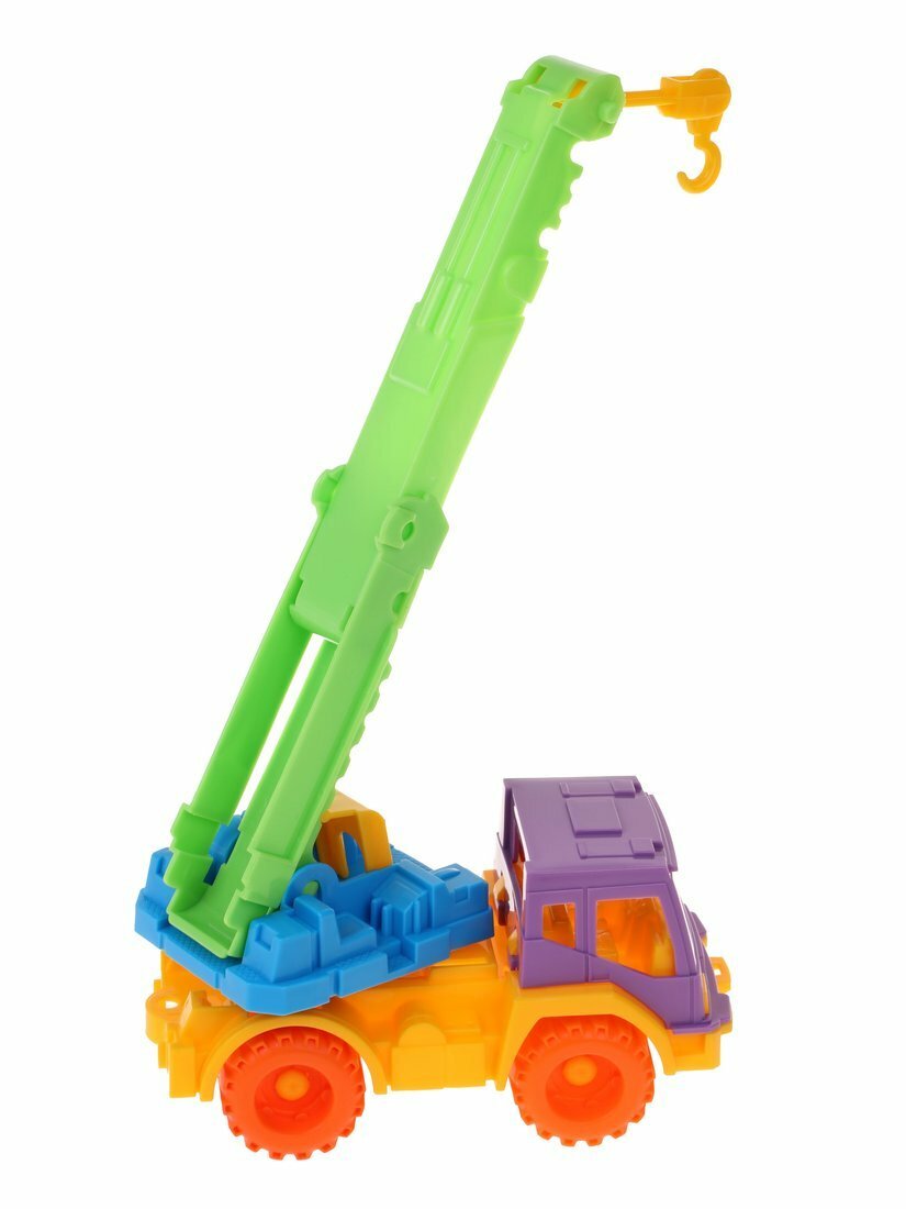 Кран "Кама" станет незаменим , во время игровой стройки в песочнице. Кран отлично справится с переносом импровизированных стройматериалов в необходимое место, с подъемом их на нужную высоту. У машины крутятся колеса и платформа, на которой установлен кран, что позволит повернуть крюк в любую сторону.