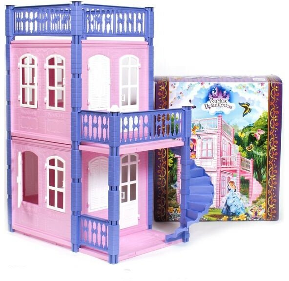 Двухэтажный домик для кукол "Замок принцессы" создан в приятной розово-сиреневой цветовой гамме. На самом верху есть открытая терраса, там можно поставить столик со стульчиками или диванчик для куклы. На первом и втором этажах находятся две одинаковые комнаты, в которых много окон, на некоторых из них есть ставни. Между этажами есть лестница. Размер игрушки: 83,5 х 73,4 х 38,4 см . Размер упаковки: 49 х 19 х 54 см .