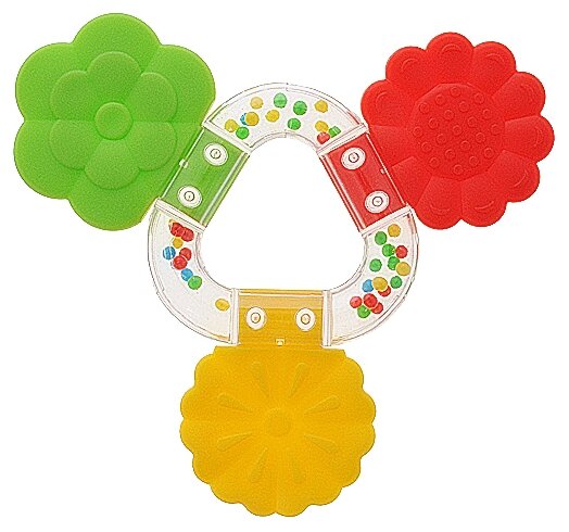 Малыши часто отказываются от обычных прорезывателей, потому что они им просто надоедают. Но если прорезыватель совмещен с погремушкой, то такая игрушка станет надолго любимой для младенца. Она будет развивать его и поможет снять боль в деснах. Погремушка имеет удобную для захвата форму кольца, на котором расположены разноцветные прорезыватели. Малыш может трясти игрушку, издавая звуки, грызть ее и наблюдать за движением шариков внутри.