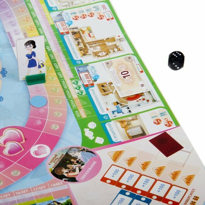 | Состав набора | игровое поле, карточки купюр - 70, сборная фишка - 4, игровая карточка - 101, жетоны - 60, фишки-маркеры - 4, кубик - 1, правила |