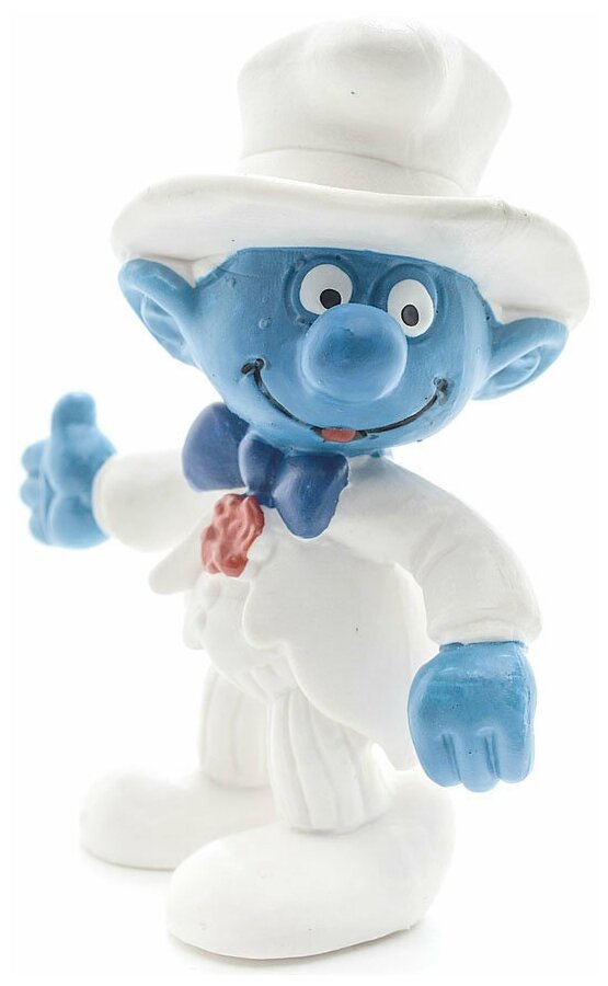 Фигурка SCHLEICH смурф жених - миленький светло-синий смурф - меряет красивый белый костюм, к которому уже подобрана синяя бабочка и белая шляпа цилиндр. Смурфик даже сорвал цветок с клумбы, чтобы им украсить свой наряд. смурф-жених готов жениться. Фигурка разработана с учетом исследований в области педагогики и произведена как настоящее произведение для маленьких детских ручек. Такая фигурка отлично подойдет для сюжетно-ролевых и независимых игр ребенка, развивая воображение, мышление, внимание, память и мелкую моторику рук. Помимо игровых идей, фигурка замечательно пополнит коллекцию уже существующих фигурок.