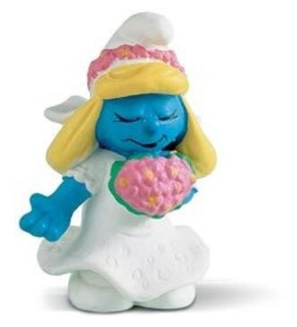 Фигурка Schleich смурф невеста - качественно выполненная фигурка смурфа девочки-невесты, которая поможет Вашему ребенку сделать игру более интересной. Ребенок сможет не только играть и узнавать для себя что-то новое, но и, возможно, начать собирать коллекцию фигурок. Каждая девушка мечтает выйти замуж. Смурфетте об этом уже не стоит и задумываться, потому что ее желание сбылось. Возлюбленный нашел ее и сделал предложение. От счастья девочка зажмурила глазки, не веря своему счатью. Сейчас она кинет букет цветов. Тот, кто его поймает, вскоре с кем-нибудь обручится.