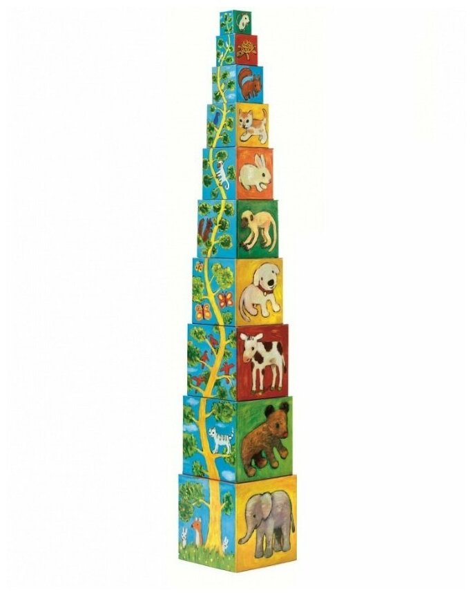 Красочные кубики от компании DJECO отлично подойдут для игр самых маленьких детишек. На боковых гранях изображены различные животные, фрукты, цифры. Малышу будет интересно вертеть в ручках кубик, знакомясь с новыми цветами, фигурками и формами. Поставив их один на другой, можно соорудить высоченную башню. Кубики выполнены из легкого, но прочного картона, складываются друг в друга по принципу матрешки, что позволяет брать игрушку в поездки и экономить место при хранении.