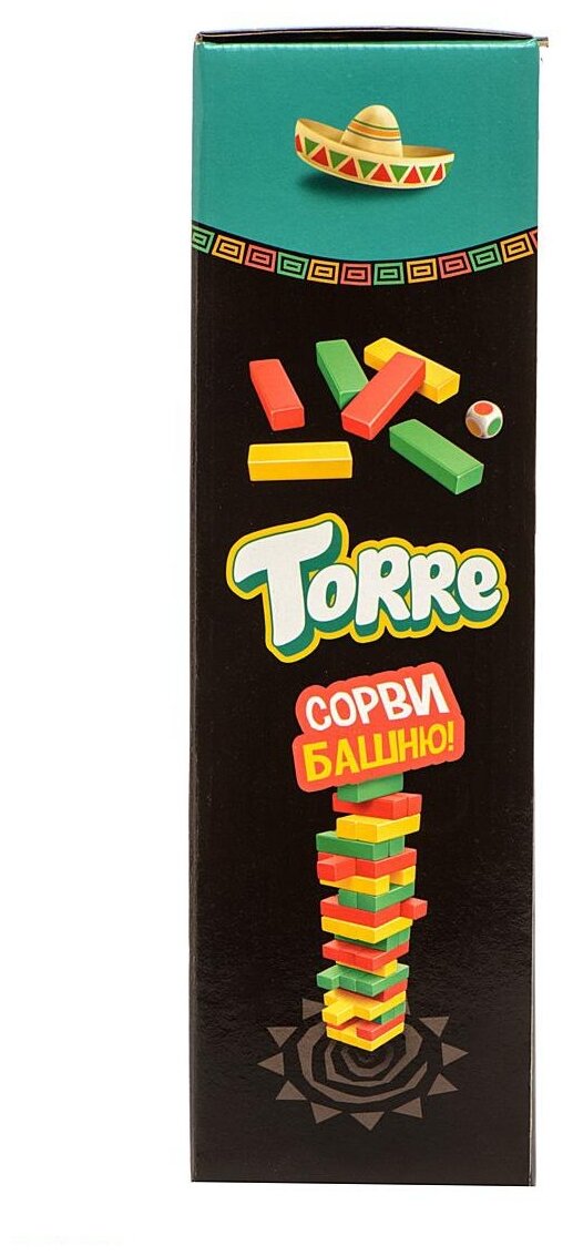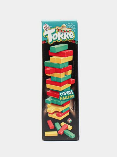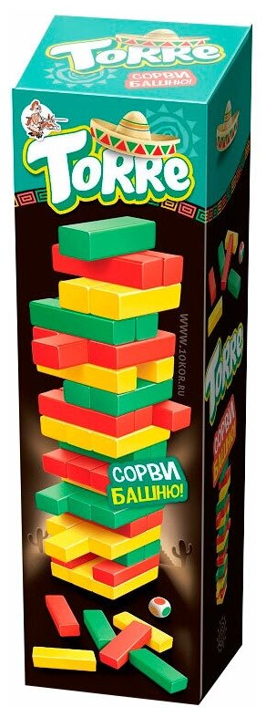 Если вы попробуете представить себе популярную игру «Падающая башня», но с более сложными правилами, то получится игра «Торре. Сорви башню». Правила игры отличаются от «Падающей башни» одним нововведением - перед каждым новым ходом игрок бросает кубик, определяющий цвет бруска, который необходимо переместить. Виновник в разрушении яркого и красочного сооружения считается проигравшим. Брусочки «Торре. Сорви башню» окрашены немецкими красками для деревянных игрушек на водной основе, что делает их совершенно безопасными как для взрослых так и для детей.