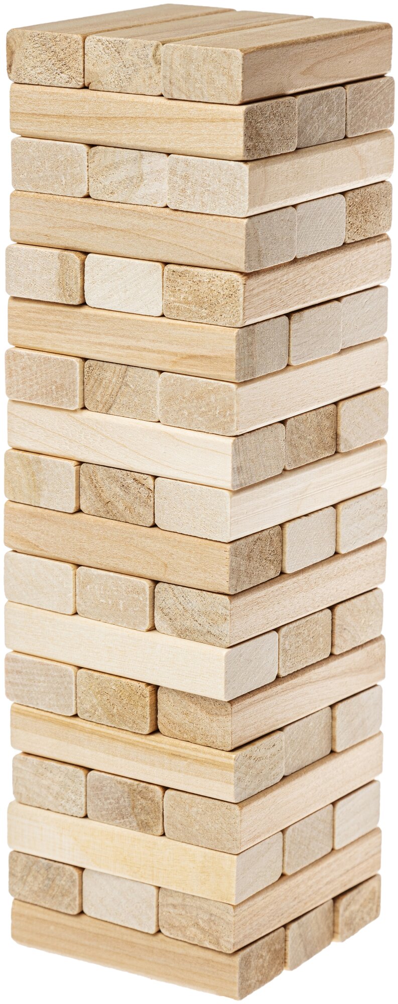 Игра "Баклуши" - не только увлекательна, она поможет развить логику, мышление, моторику рук. Деревянные брусочки нужно сложить в ровную поленницу-башню. Игроки должны вытаскивать брусочки так, чтобы не развалить башню. Проиграет тот, кто разрушит башню первым.