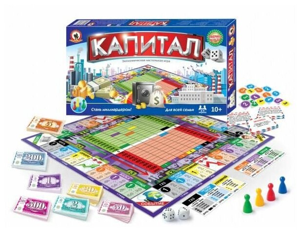 Настольная экономическая игра Капитал от бренда Русский стиль представляет собой более развернутую версию игры Монополия. В данном варианте игры участники могут покупать земельные участки и населенные пункты, вести разработку полезных ископаемых и внедрять свою налоговую систему. Как и в реальном мире, игроки познакомятся с условиями взаимодействия разных отраслей экономики и общества. Исходя из возраста игроков, возможны два варианта игры: с внедрением налоговой системы или без нее. В последнем случае все расчеты значительно упрощаются.