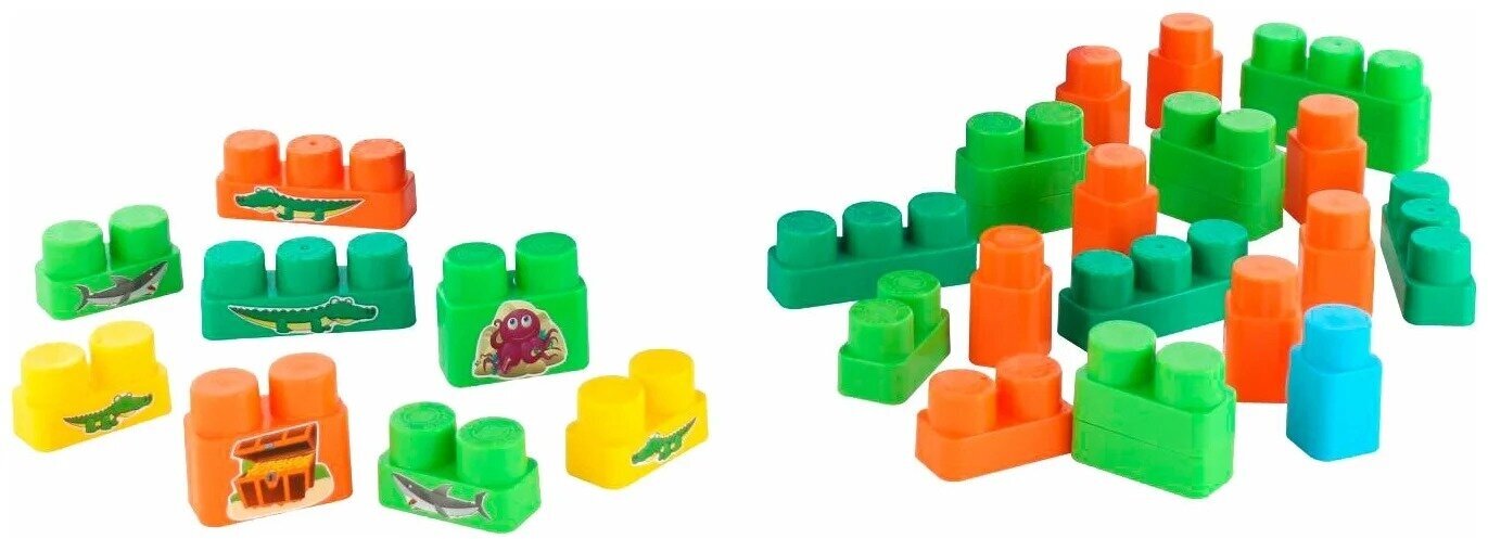 Игровой набор Пиратский корабль из серии Molto Blocks от бренда Полесье включает в себя корабль, фигурку пирата и конструктор из 30 деталей. Из деталей конструктора можно собрать пальму. На корабле вращается рулевое колесо и поворачивается из стороны в сторону подзорная труба. Многие детали конструктора украшены различными наклейками, изображающими морских обитателей или сундук с кладом. С таким оригинальным набором ребенок сможет ощутить себя настоящим покорителем морей.