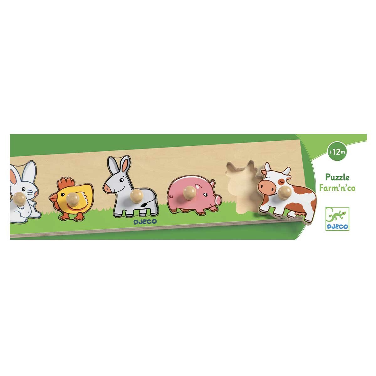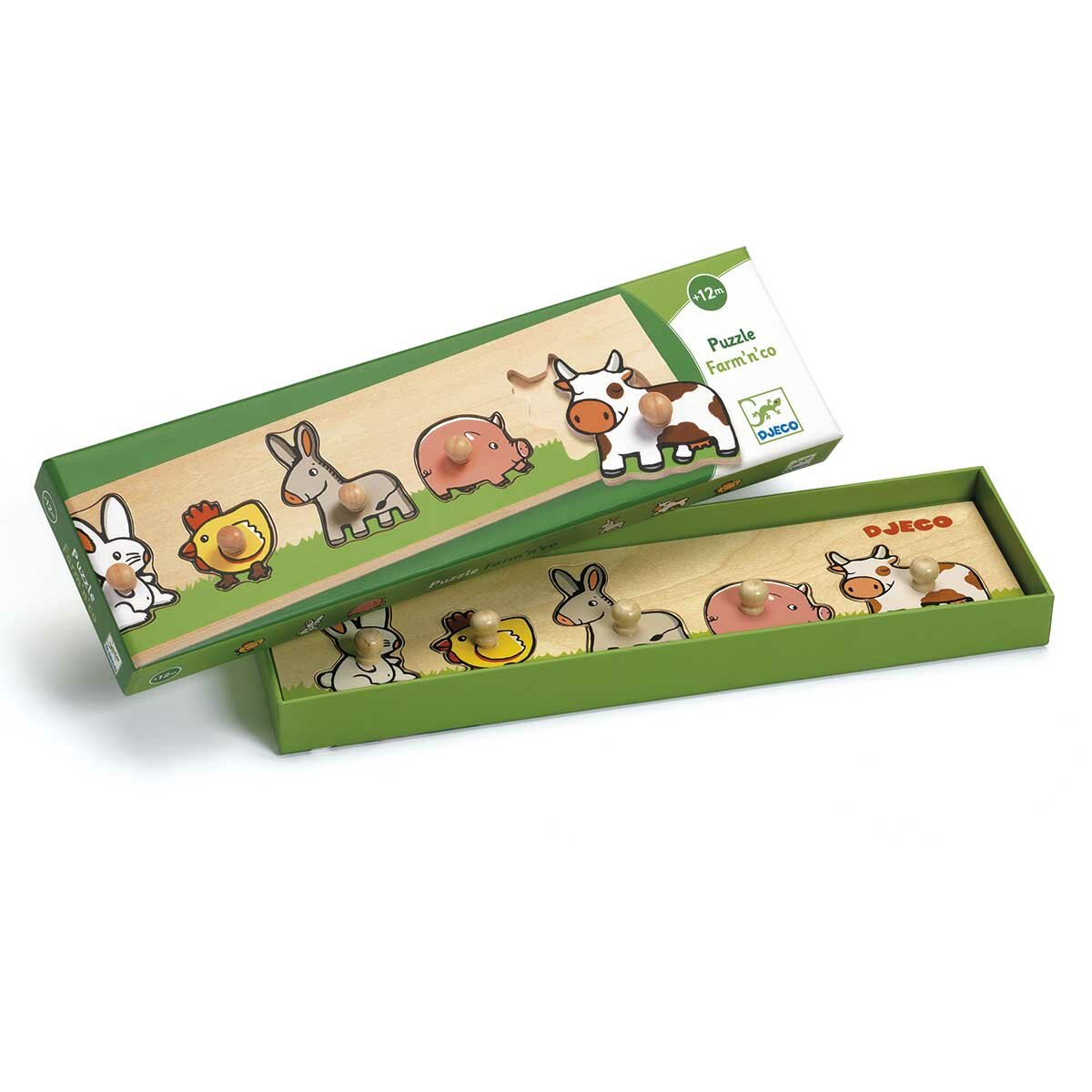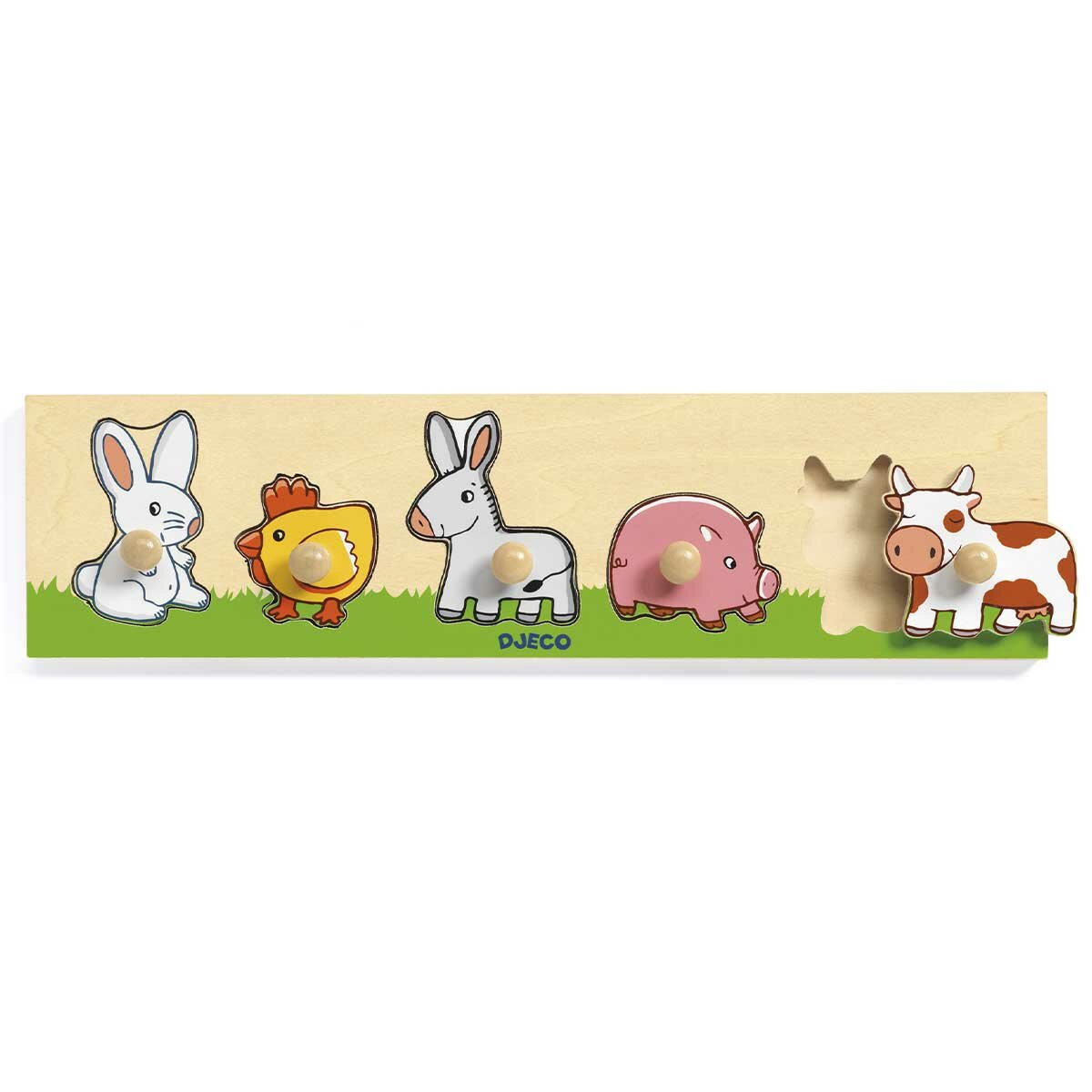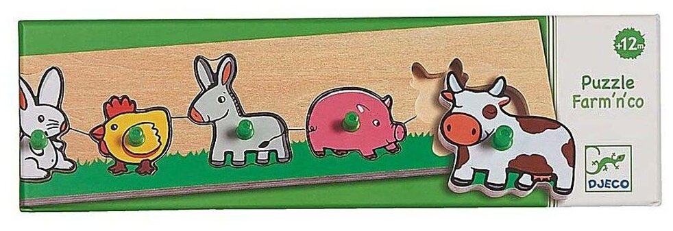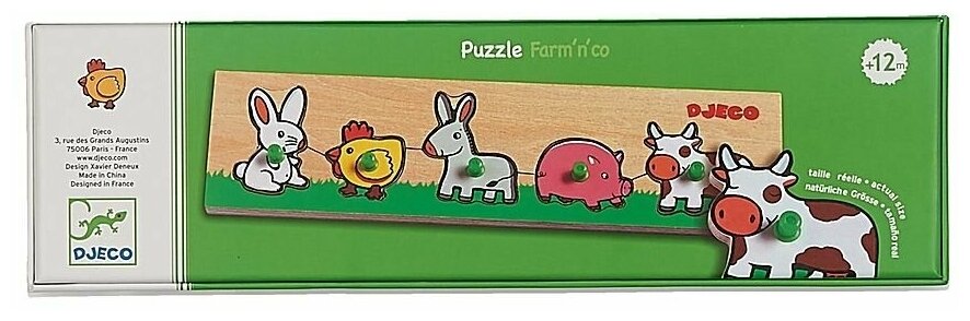 Деревянная рамка-вкладыш Ферма - игра с красочным деревянным пазлом-сортировкой "Ферма" станет самой любимой для Вашего малыша! Ребенок с удовольствием станет рассматривать, изучать и подбирать место для каждого из пяти животных, живущих на ферме: белого кролика, желтого цыпленка, ослика, веселой обезьянки, розового поросенка и пятнистой коровы. Круглые ручки на фигурках сделаны специально для удобного захвата маленькими детскими пальчиками. Деревянная рамка-пазл от компании DJECO привлекает внимание своими яркими сочными красками, забавными рисунками и высоким качеством материала. Деревянные игрушки экологически безопасны и излучают положительную энергетику природы. Игра с пазлами способствует развитию сенсомоторной координации, мелкой моторики рук. Деревянные рамки-вкладыши обучают основам классификации и логике, ориентации на плоскости, учат различать предметы по силуэтам.