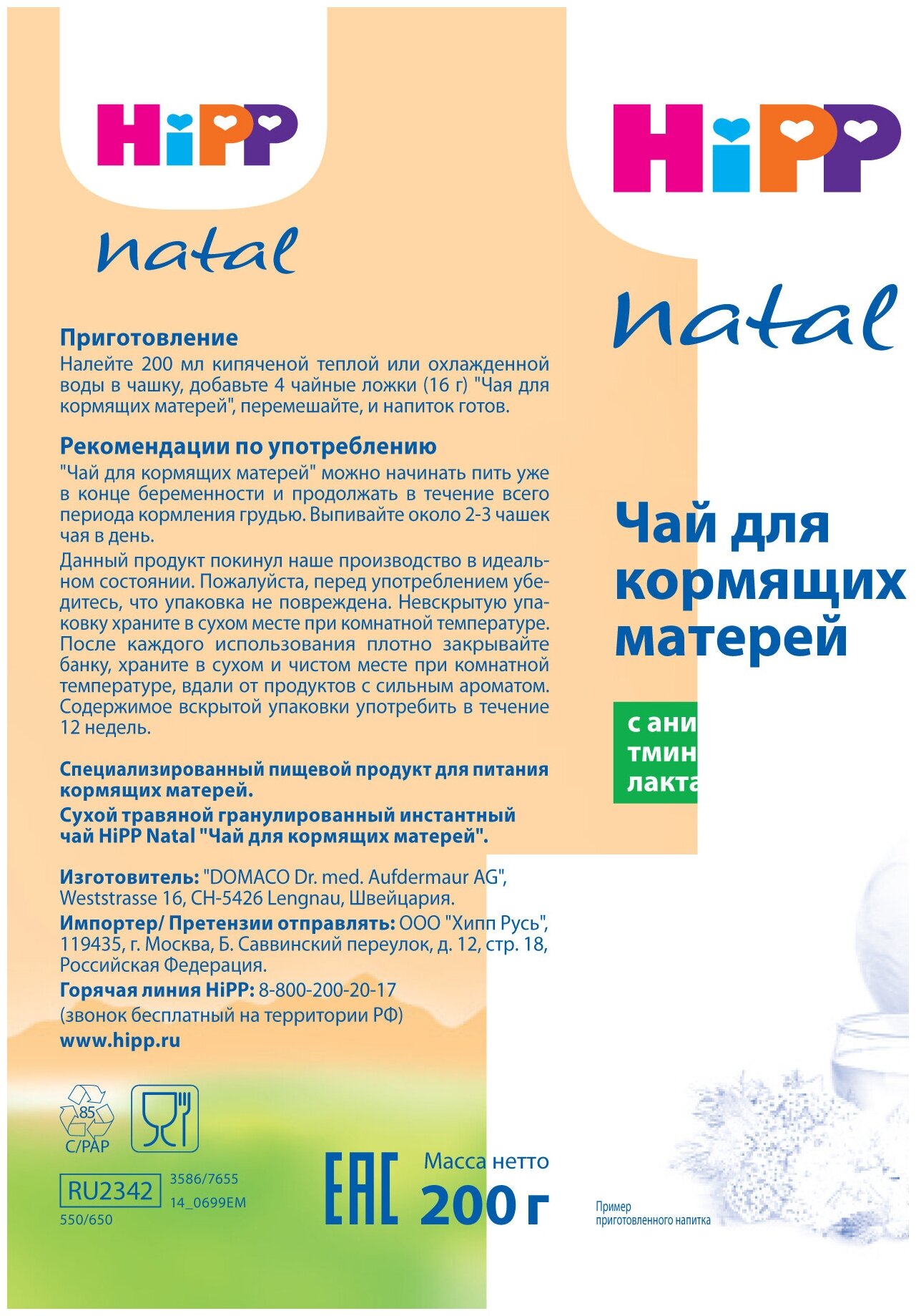 | Описание товара | Травяной гранулированный чай HiPP Natal - очень вкусный напиток, который содержит целый ряд полезных трав, стимулирующих выработку грудного молока. Чай для кормящих матерей HiPP - быстрорастворимый, легкий в приготовлении напиток. Продукт не содержит искусственных красителей и ароматизаторов, без консервантов, без глютена. |