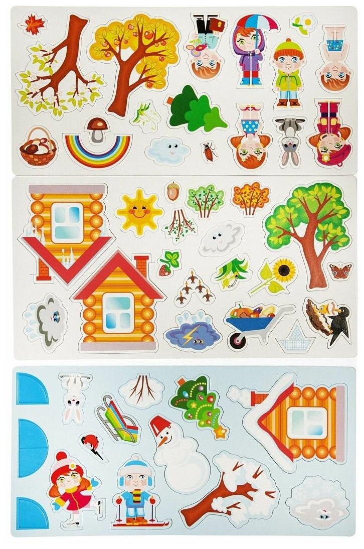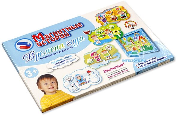 Обучающая развивающая игра, предназначенная для детей старше 3 лет. Дополнительный набор отличается от основного, артикул 01542, отсутствием магнитной доски. Если у вас уже имеется любая игра из серий Магнитные истории или Пифагорики, планшет от нее подойдет к этому дополнительному набору и даст возможность сэкономить на покупке. Если же вы покупаете наши обучающие наборы впервые, предпочтительнее приобрести полноценную игру арт.01542 с магнитной доской. Времена года - познавательная для Вашего ребенка игра, позволяющая познакомиться с временами года, научиться понимать, чем зима, весна, лето и осень отличаются друг от друга. Выберите игровое поле, закрепите его на доске с помощью магнитных уголков и помогите ребенку подобрать, соответствующие выбранному полю фигурки. Магнитная основа поля позволяет фигуркам хорошо держаться на нем. Предлагается два варианта игры: 1. Ребенок расставляет фигурки в соответствии с временем года. 2. Взрослый создает намеренно неправильную историю и просит малыша найти ошибку. Надеемся, что наши игры помогут вашему ребенку в познании окружающего нас многогранного и разнообразного мира.