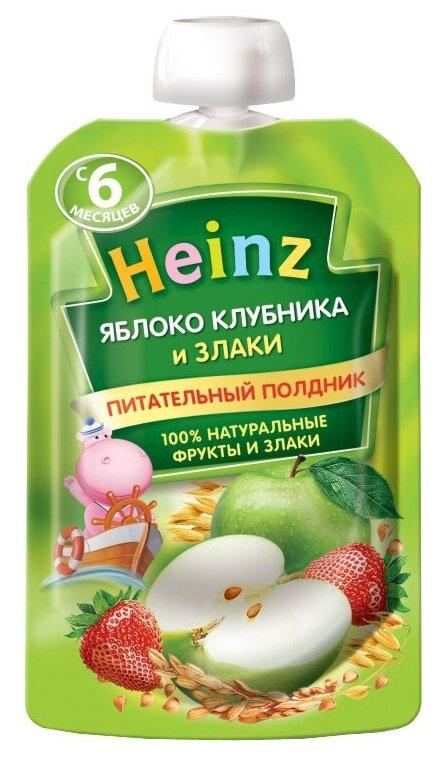 Пюре Heinz яблоко-клубника со злаками с 6 месяцев 90 гр Яблоко, клубника и злаки пауч