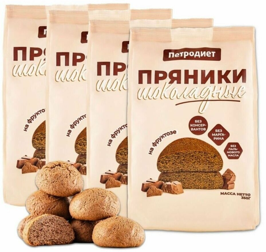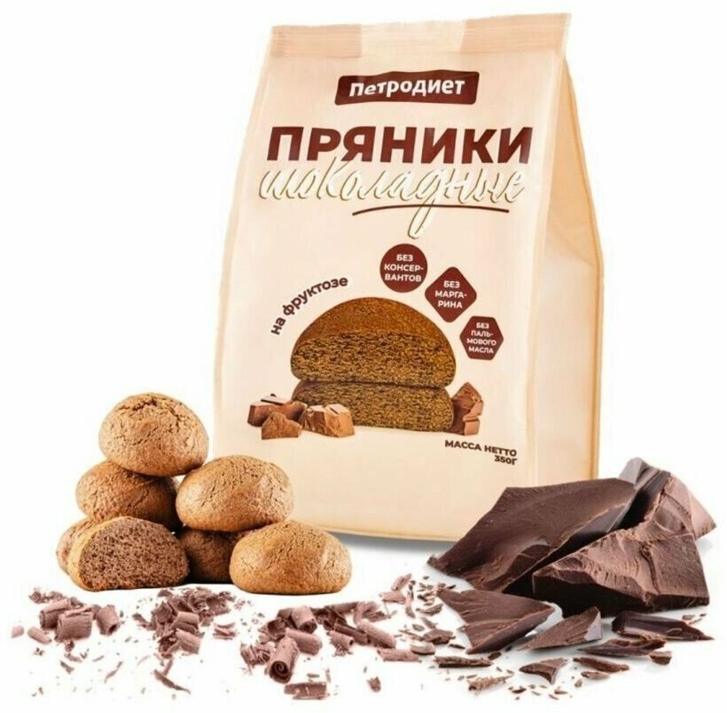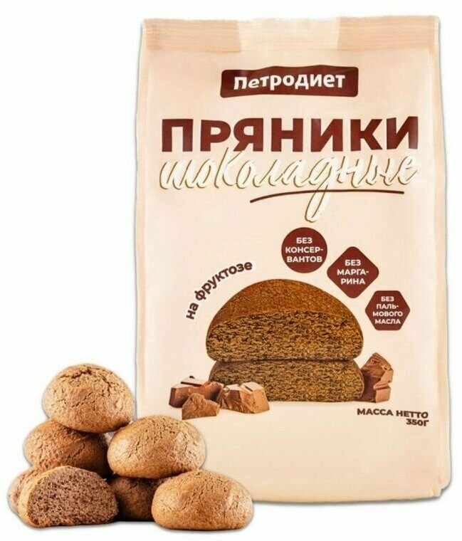 Пряники Петродиет шоколадные на фруктозе 350 г (5187)