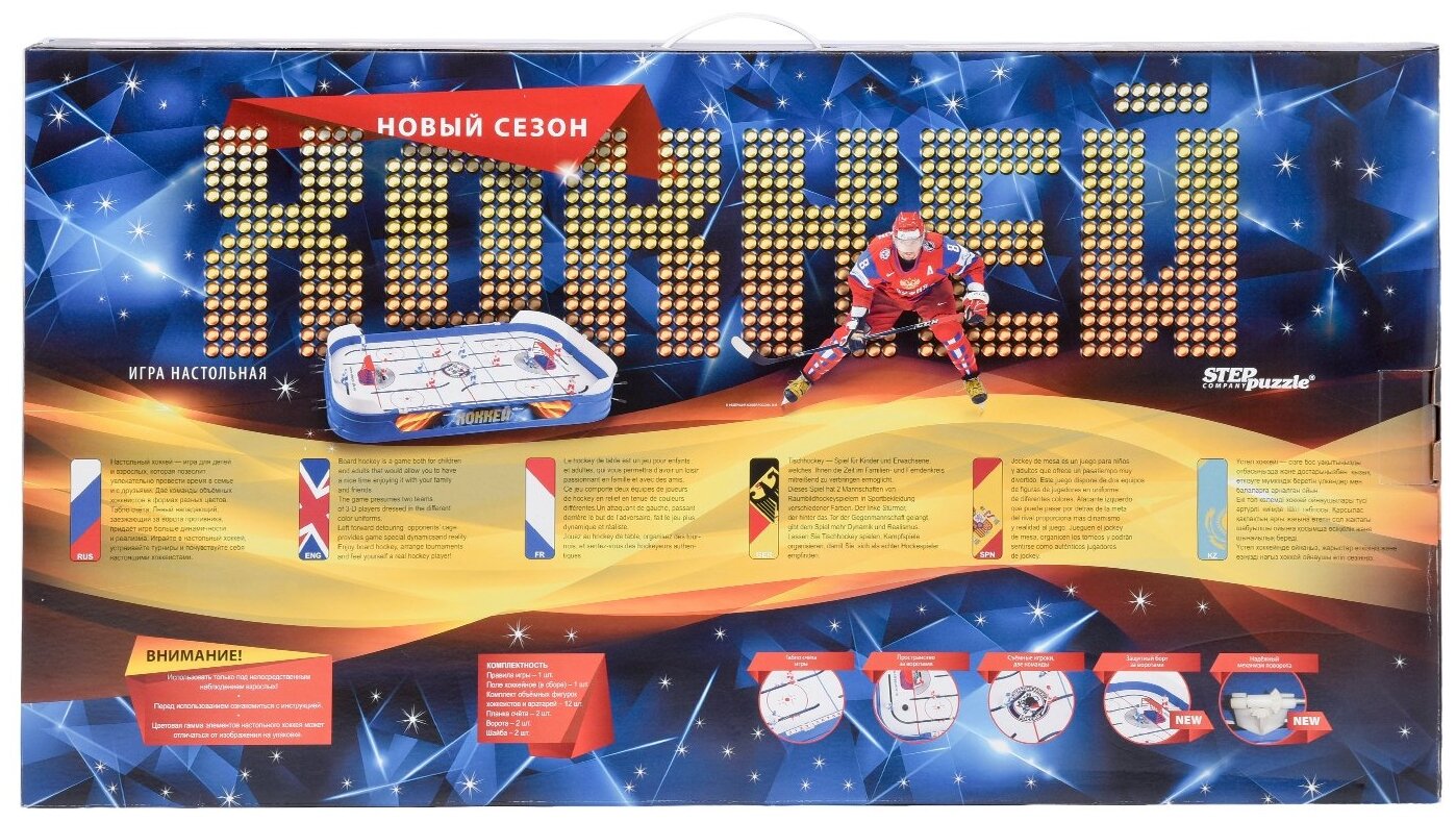 | Состав набора | хоккейное поле, 12 фигурок, 2 планки счета, 2 ворот, 2 шайбы |