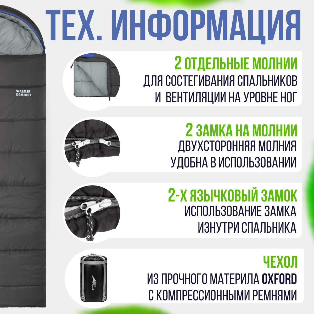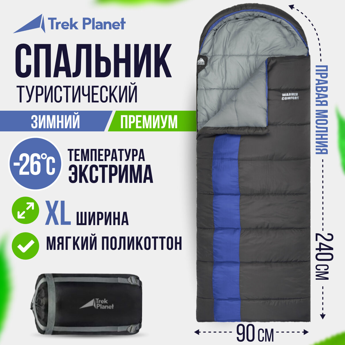 Самый теплый, просторный и очень комфортный 4-х сезонный спальник-одеяло с капюшоном Trek Planet . Его отличительная особенность - натуральная внутренняя ткань поликоттон: прекрасно дышит и дает приятные ощущения во время сна.