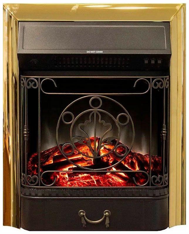 Электрический очаг с звуковым эффектом горения дров (регулируется) предназначен для встраивания в стандартные обрамления. Эффект пламени - сгоревшие дрова. Черная решетка имитирует колосниковую решетку настоящего дровяного камина. Нагреватель с поддувом спрятан в козырьке очага и обеспечивает обогрев в холодную погоду. Переключатель позволяет включать на полную или половинную мощность.