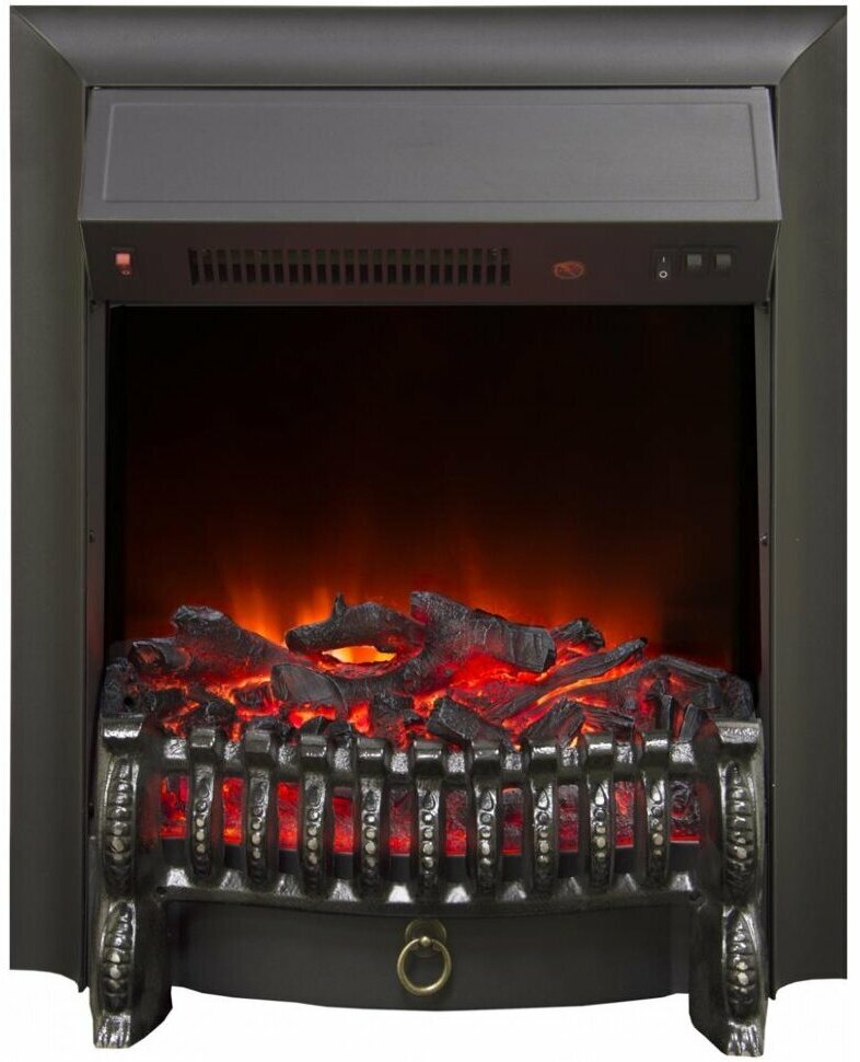 Электрический очаг с звуковым эффектом горения дров (регулируется) предназначен для встраивания в стандартные обрамления. Эффект пламени - сгоревшие дрова. Черная решетка имитирует колосниковую решетку настоящего дровяного камина. Нагреватель с поддувом спрятан в козырьке очага и обеспечивает обогрев в холодную погоду. Переключатель позволяет включать на полную или половинную мощность.