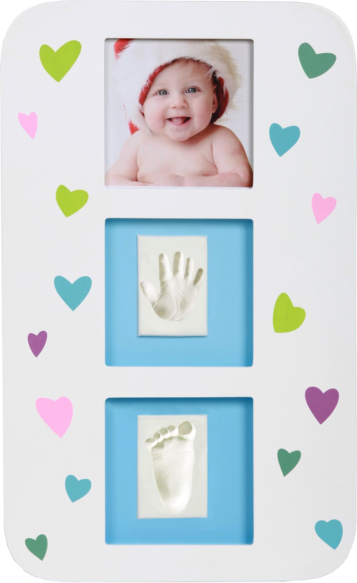 Крохотные отпечатки ножки и ручки малыша, а также его фото, помещенные в рамочку белого цвета, вызывают ни с чем не сравнимое чувство умиления при только взгляде на этот чудесный сувенир.