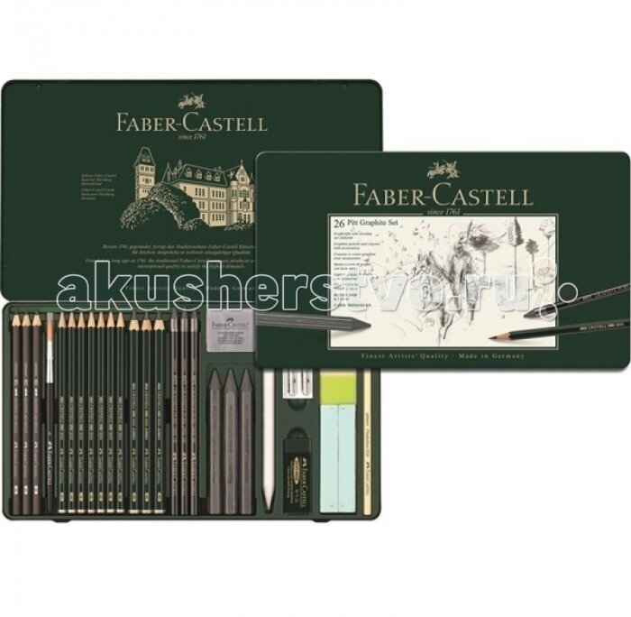Сервис сравнения цен СкидкаГИД предлагает сравнить цены на товар «Набор для графики Pitt Graphite 26 предметов Faber-Castell Специальный набор Pitt Monochrome 26 предметов в металлической коробке»