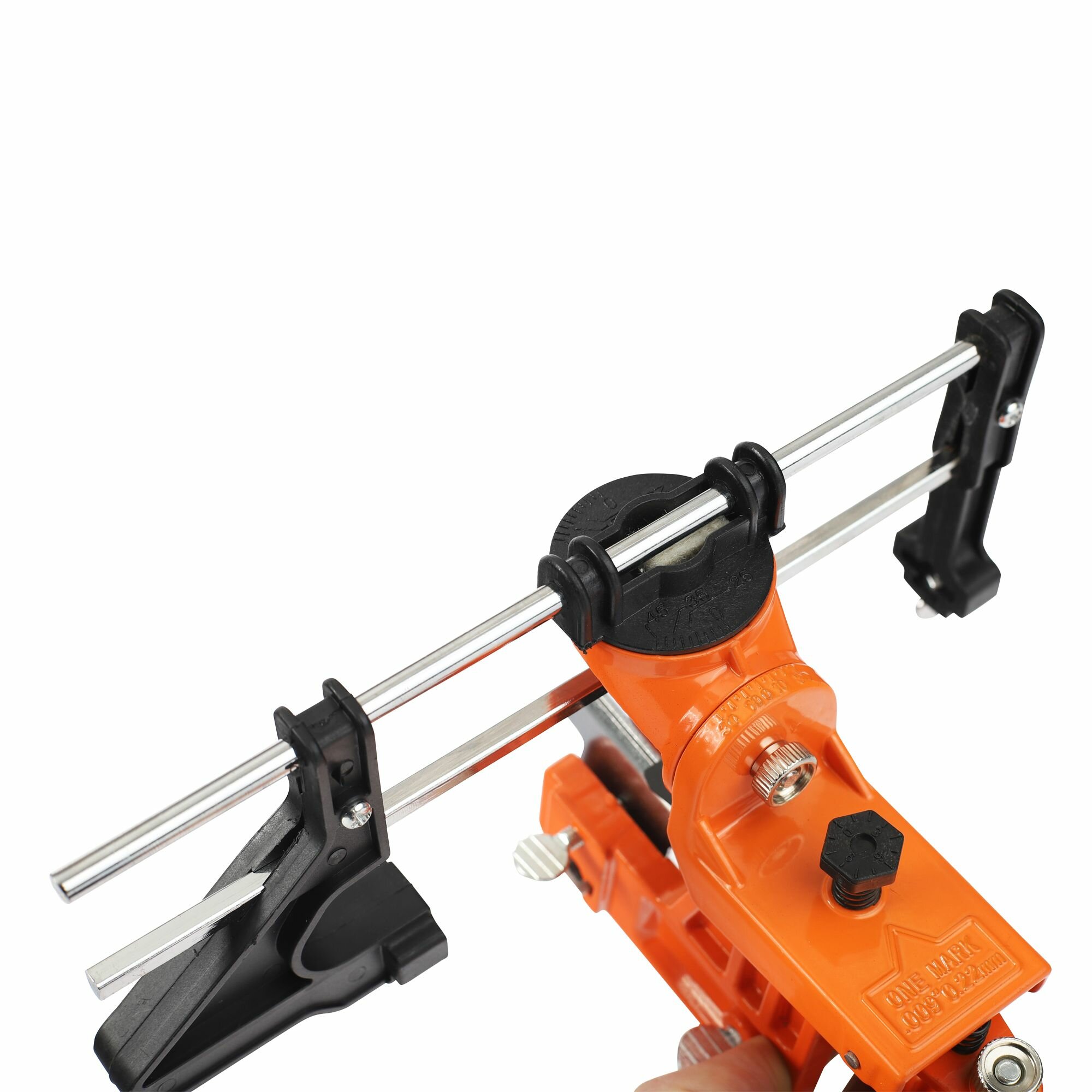 Ручной, универсальный министанок. Позволяет устанавливать круглые напильники всех используемых диаметров (4.0-5.5 мм). Подходит для всех типов цепей.