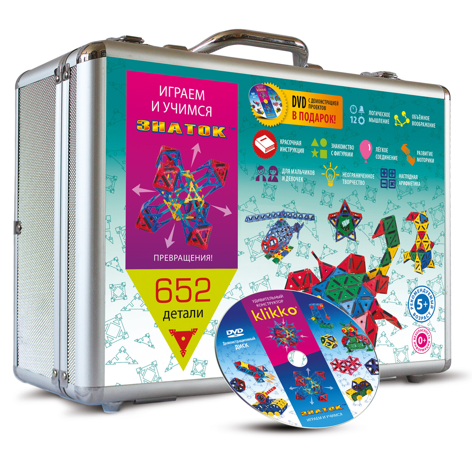 - Развивающий конструктор Klikko Знаток, 652 детали в кейсе