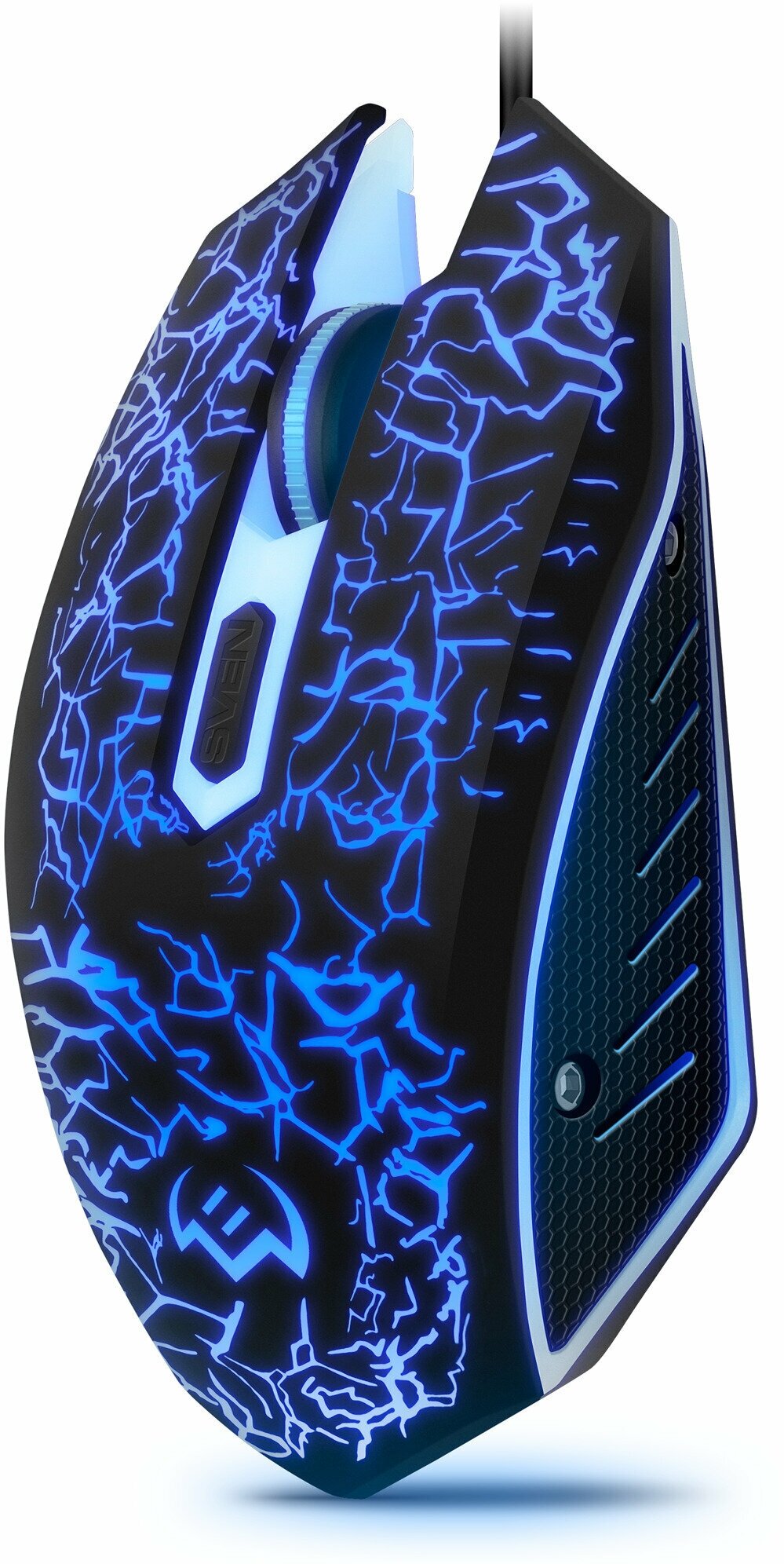 Геймерская мышь от Sven – оптимальное решение для тех, кто решил начать свое знакомство с захватывающим миром компьютерных игр. В есть самое необходимое – утяжеленный корпус для плавного, четкого хода и точного позиционирования, покрытие SoftTouch – чтобы мышь было приятно держать в руках, кнопки переключения разрешения и удобные боковые кнопки навигации вперед-назад.