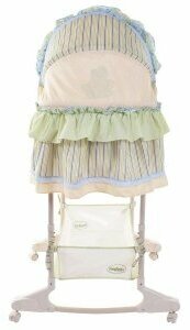 - Симпатичные игрушки на мобиле в виде лягушат. Сама колыбелька имеет простой, но привлекательный вид. В ней так же предусмотрены виброукачивание, мелодии для ребенка и корзина для игрушек. Вообще, продумана от и до.