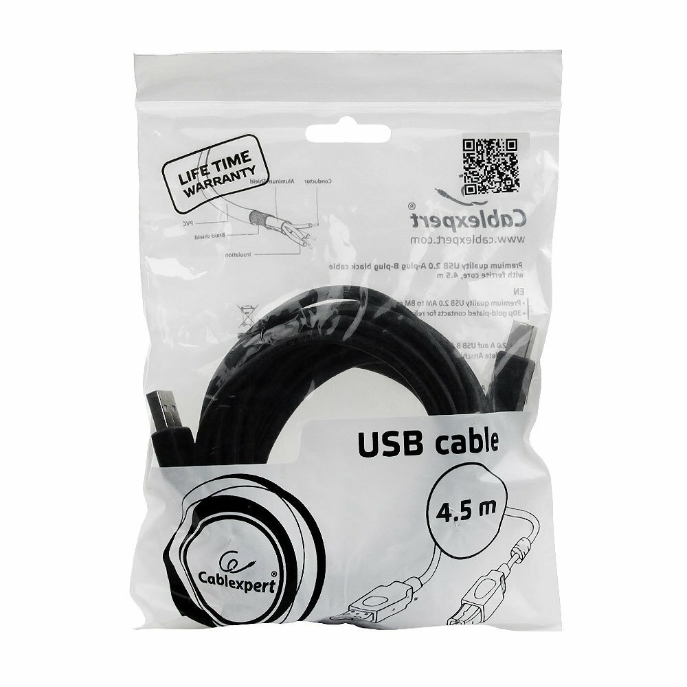 Кабель USB 2.0 AM-BM 4.5м Gembird экран 2 ферритовых кольца черный CCF2-USB2-AMBM-15 Pro CCF2-USB2-AMBM-15