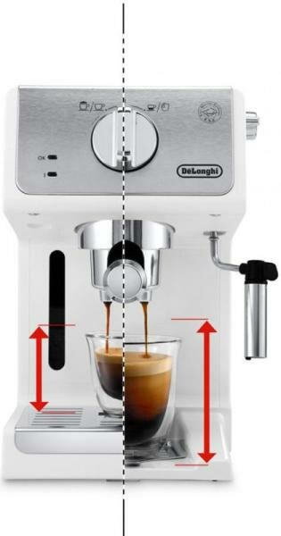 - Аппарат достойный, нагревается быстро, эспрессо варит хорошо, молоко взбивается неплохо, но естественно не так, как на коммерческих кофемашинах. Лоток для капель можно убрать, в результате помещаются высокие чашки.
