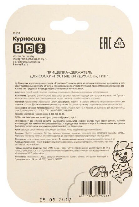 На сегодняшний день товар «Прищепка для пустышки с цепочкой Курносики "Дружок" (в ассорт.) (19553)» можно купить с кешбеком в 3 магазинах: Aloeapteka, Яндекс.Маркет, ГЛОБУС