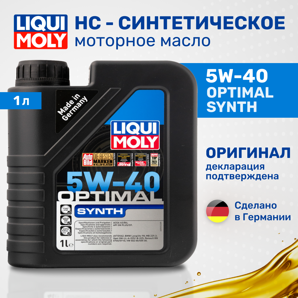 - Моторное масло LIQUI MOLY Optimal Synth 5W40 SNCF A3B4, 4 л, синтетическое (3926)
