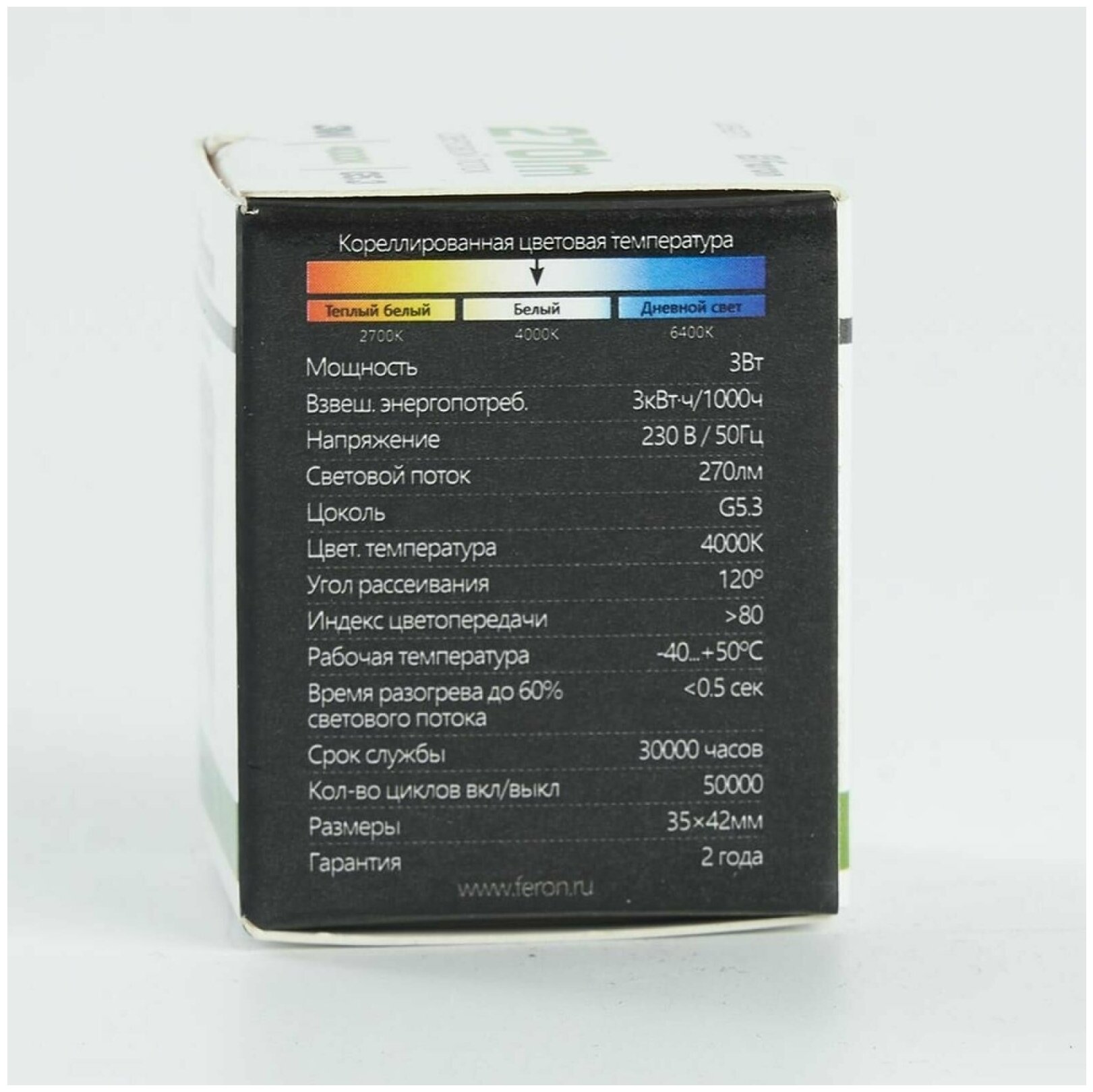 Лампочка светодиодная полусфера G5.3 3W 4000K 260lm - продукт известной компании Feron (Китай).