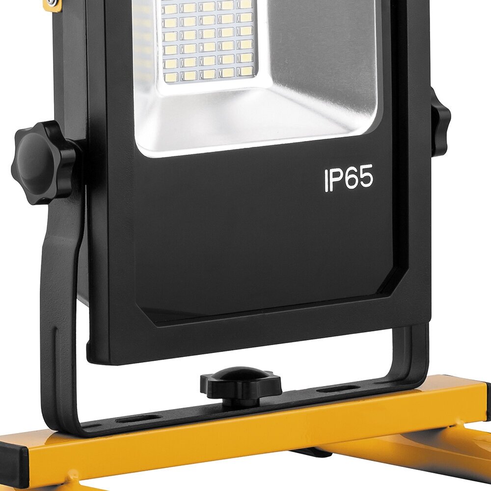 Надежная, крепкая и компактная конструкция прожектора со степенью защиты IP65 позволяет использовать устройство на улице, в том числе при неблагоприятных погодных условиях. Длительное время работы без подзарядки позволит Вам взять прожектор, куда бы Вы не отправились. С помощью USB-провода Вы также сможете зарядить прожектор в машине, если поблизости нет электрической розетки. Время полного заряда аккумулятора составляет 5 часов. Время автономной работы – 6,5 часов.