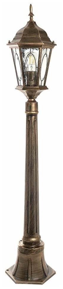 Садово-парковый светильник, столб шестигранный 60W E27 230V, черное золото Feron PL165 выполнен в классическом стиле. Изготовлен с применением прочного металла и стекла в качестве рассеивателя. Данная модель имеет стандартный патрон и подходит для использования с лампами накаливания, компактными люминесцентными, а также светодиодными лампами.