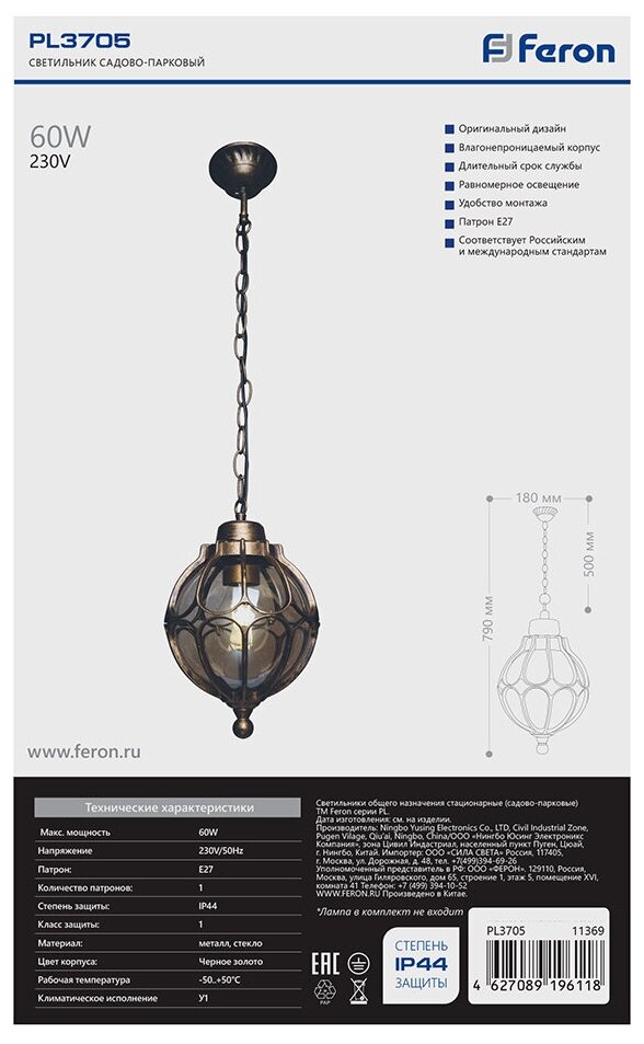 Светильник садово-парковый от Feron - это высококачественное уличное освещение, которое станет незаменимым элементом вашего сада или парка.Классический стиль светильника придает ему элегантность и утонченность, которые гармонично впишутся в любой ландшафтный дизайн.Светильник садово-парковый от Feron обеспечивает яркое и равномерное освещение, что позволяет создать уютную и комфортную атмосферу для отдыха и развлечений.Благодаря прочному и долговечному материалу, из которого изготовлен светильник, он будет служить вам долгие годы, сохраняя свои первоначальные характеристики.Выбирая светильник садово-парковый от Feron, вы получаете не только качественное и надежное уличное освещение, но и стильный элемент декора, который станет украшением вашего сада или парка.