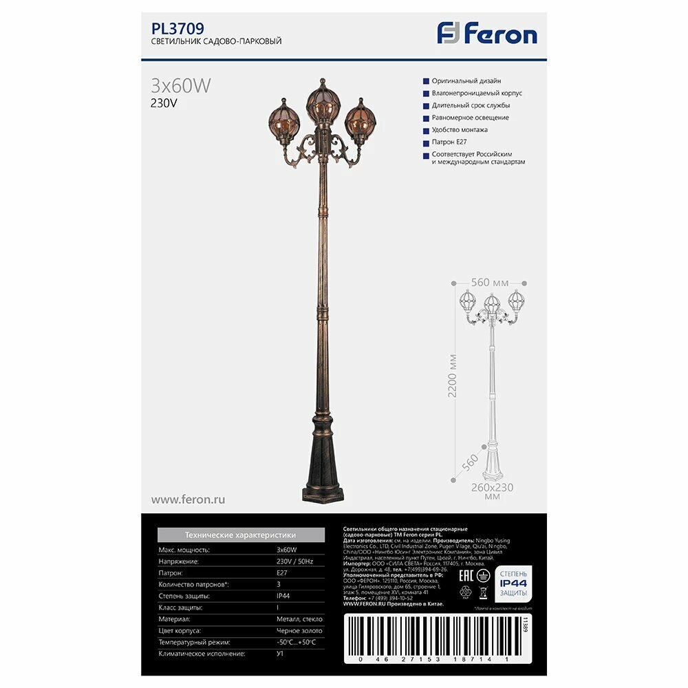 Садово-парковый светильник-столб FERON 11389