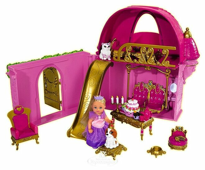 Роскошный королевский замок для принцессы Евы. Он яркий, розовый, с золотой горкой и перилами. Просто мечта, а не дом! И все в нем сделано для королевы. Величественный трон, царская кровать, королевский пир с разными блюдами. Маленькая Ева в роскошном платье живет там со своими друзьями-питомцами котенком и щенком. Им некогда скучать, они постоянно вместе развлекаются и играют. Присоединяйся к Еве и ее друзьям!