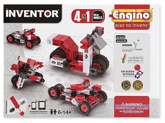 Конструктор Engino - это безграничные творческие возможности юных инженеров! Удивительный конструктор отличается уникальной формой деталей, различными способами их соединения и возможностью создавать подвижные модели. С ним ребенок самостоятельно соберет интереснейшие изобретения, которые станут первым шагом в удивительный мир науки и техники.