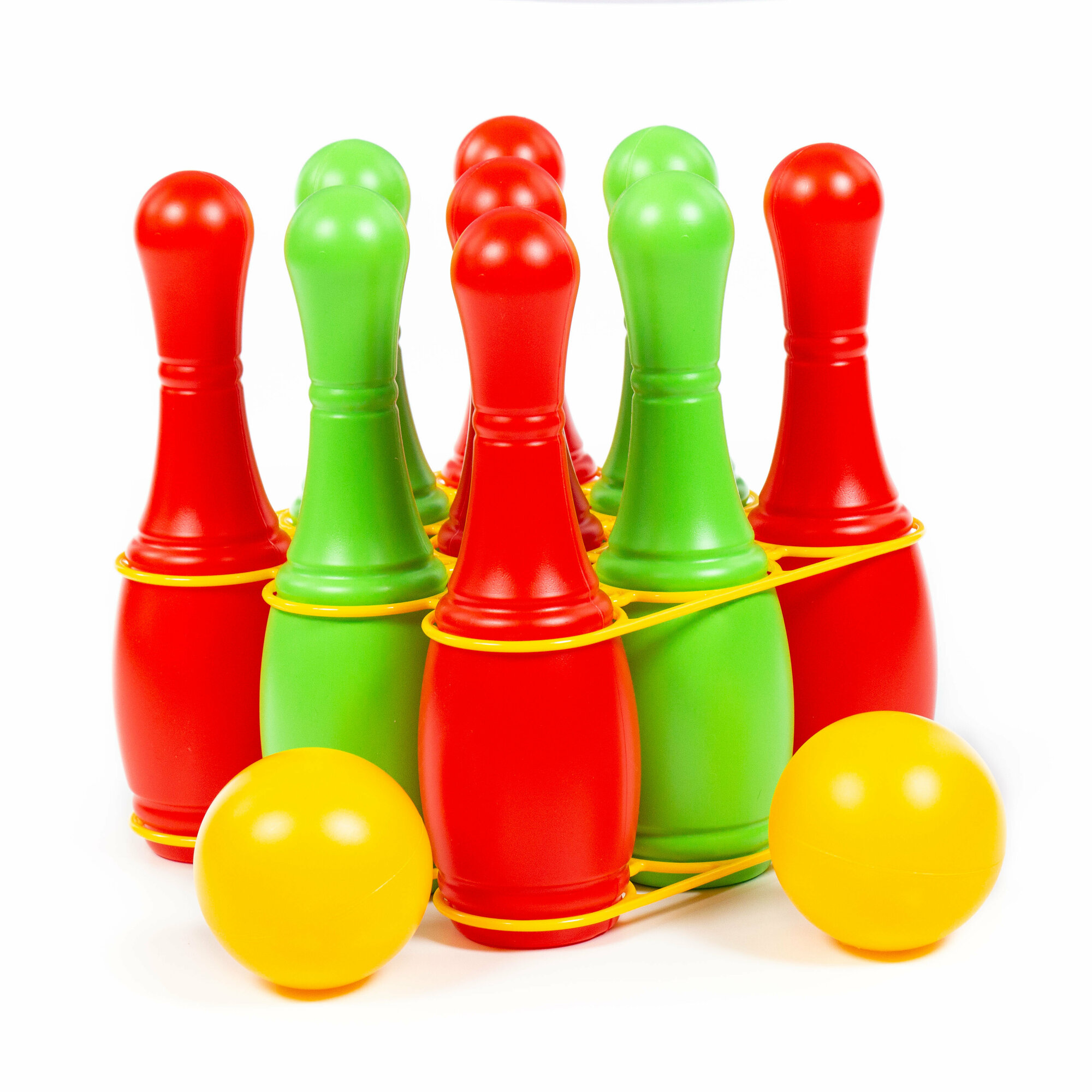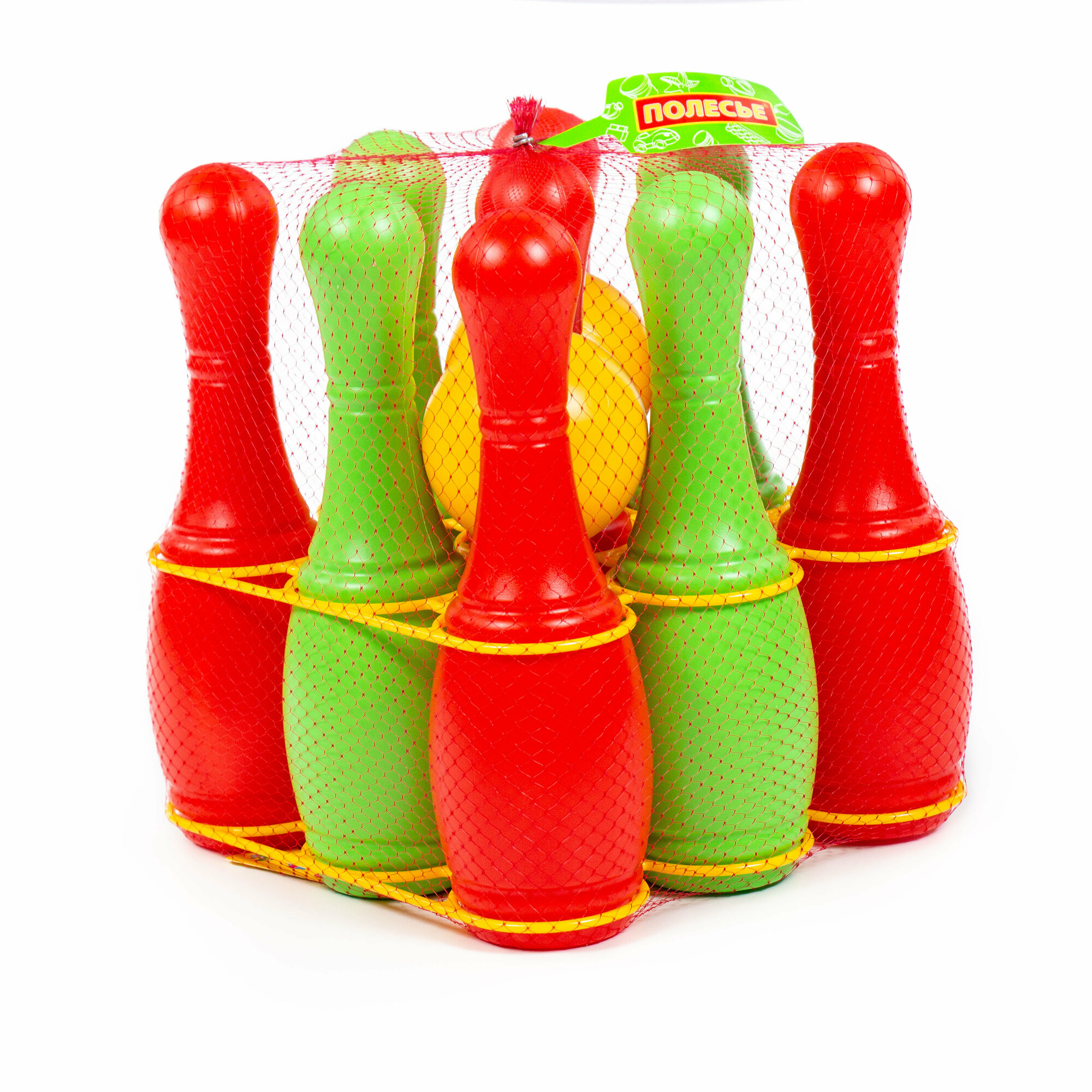 "Играть в боулинг можно с самого раннего возраста, если подобрать для этого правильный инвентарь. Легкие и прочные кегли от компании ""Полесье"" изготовлены из качественного пластика. В набор входит 9 кегель и 2 мячика. Можно использовать дома и на улице. Игрушка подходит от детей от 3-х лет. Внимание! Цветовое исполнение может отличаться от изображенного на фото."