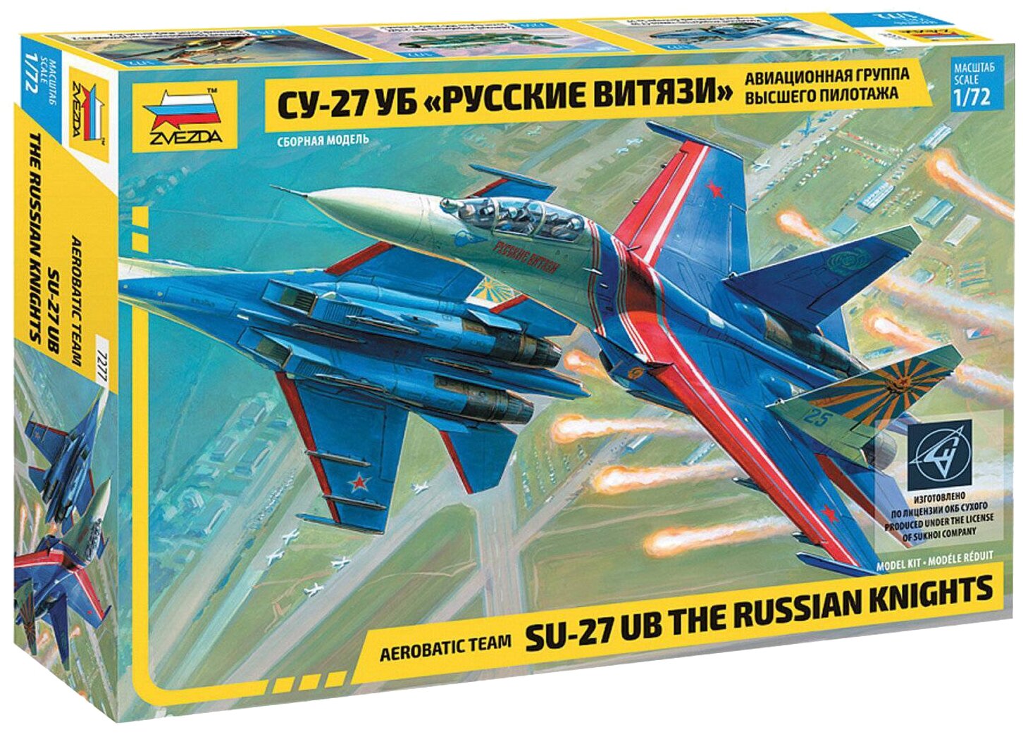 Этот набор от компании «Звезда» привлекателен тем, что позволяет собрать из имеющихся деталей реалистичную уменьшенную копию настоящего самолета модели «СУ-27 УБ», того самого, который является участником авиационной группы высшего пилотажа «Русские Витязи»! Готовый миниатюрный летательный аппарат будет отменно смотреться на полке коллекционера, а если его раскрасить красками соответствующих цветов, то он будет выглядеть еще более правдоподобно.