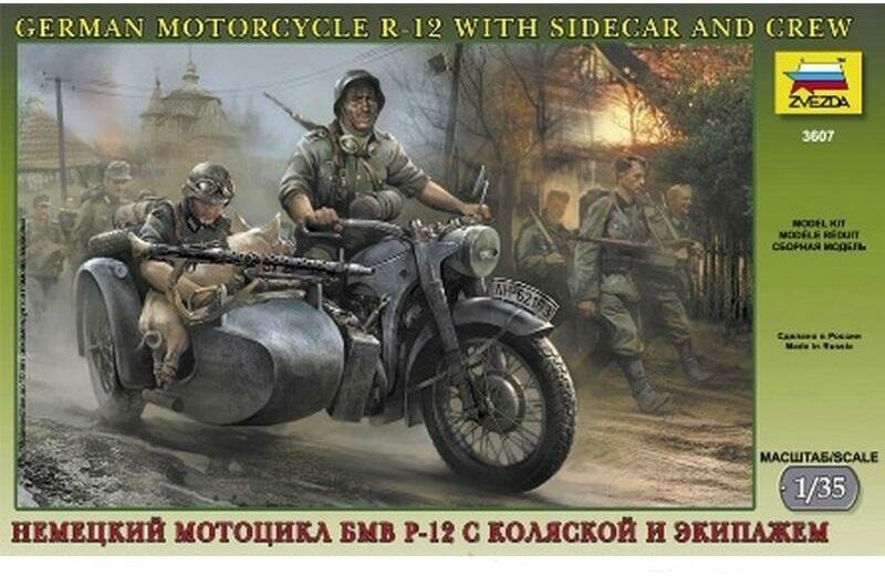 BMW R-12 — мотоцикл, который производился в Германии с 1935 по 1942 год. Выпускался как в военных, так и в гражданских вариациях. За время производства было выпущено более 36 000 таких моделей, мотоцикл стал самым массовым для немецкой армии. На то время мотоцикл БМВ Р-12 в спортивном варианте установил рекорд скорости — 279,5 км/час, и этот рекорд продержался 14 лет! Применение мотоцикла на войне было очень широким: на нем возили припасы, пищу, раненых, доставляли важные депеши и сообщения, даже ходили в разведку.