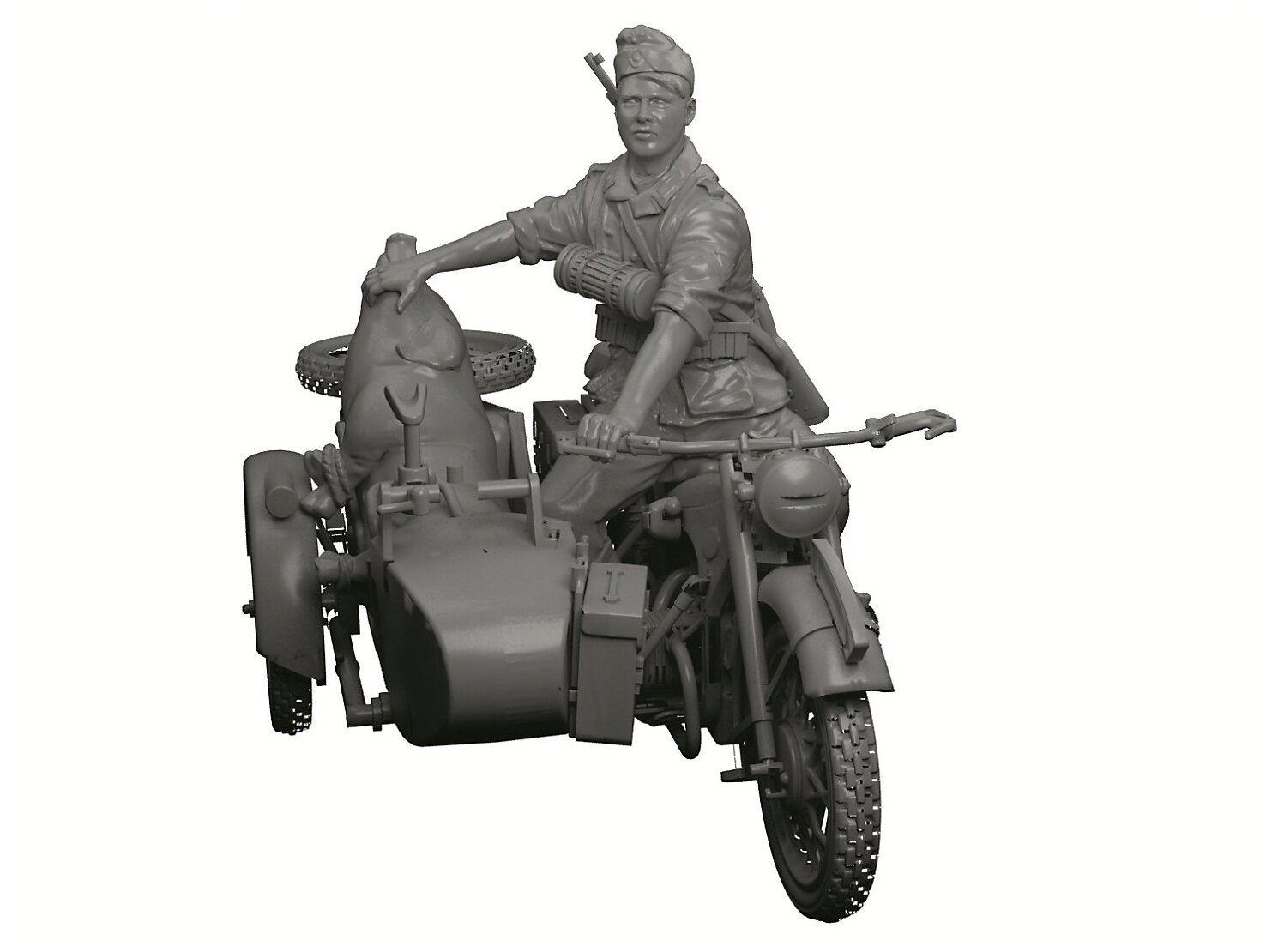 Набор исторической миниатюры , требует полной сборки, от мотоцикла до фигур, возможны 2 варианта,мотоциклист в летней форме, с поросенком в каляске, и два мотоциклиста - один в каляске с пулеметом. Собирается легко, никаких доработок не требует, все детали хорошо подогнаны. Идеально подходит для диорам.